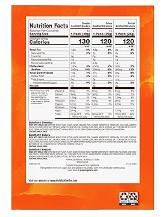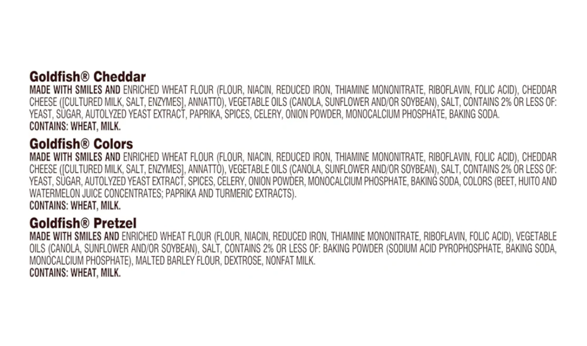 Always baked, never fried: Goldfish crackers are always baked with no artificial flavors or preservatives