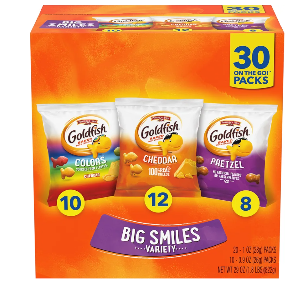 Perfect for sharing: 30 count box includes a variety of favorite Goldfish flavors for sharing with family or friends