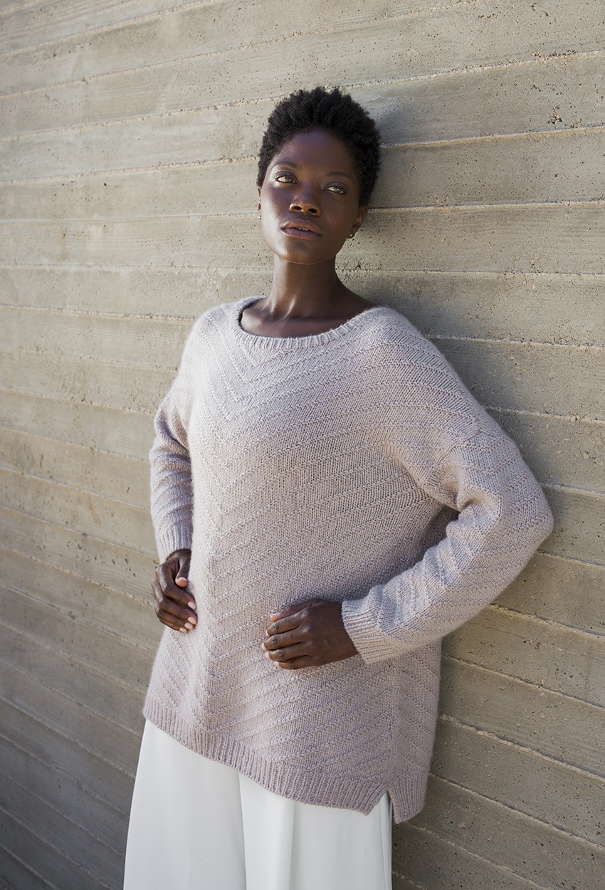 - Above the ribbing on body and sleeves, a 1-stitch garter selvedge is worked at each edge, followed by a plain stockinette stitch separating the chevron pattern from the garter stitch selvedge (to facilitate smooth seaming).