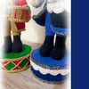 Other things you need: stuffing, scissors, tapestry needle, pencil, ruler, aluminum wire, cutting pliers, cardboard, (hot) glue, 2 sets of 10mm flatback black doll eyes**, two 8mm beads (1 gold colored, 1 white or silver), two 70mm long sticks (1 gold colored, 1 silver…you can use painted 3mm thick aluminum wire for this), 4 cotton swabs