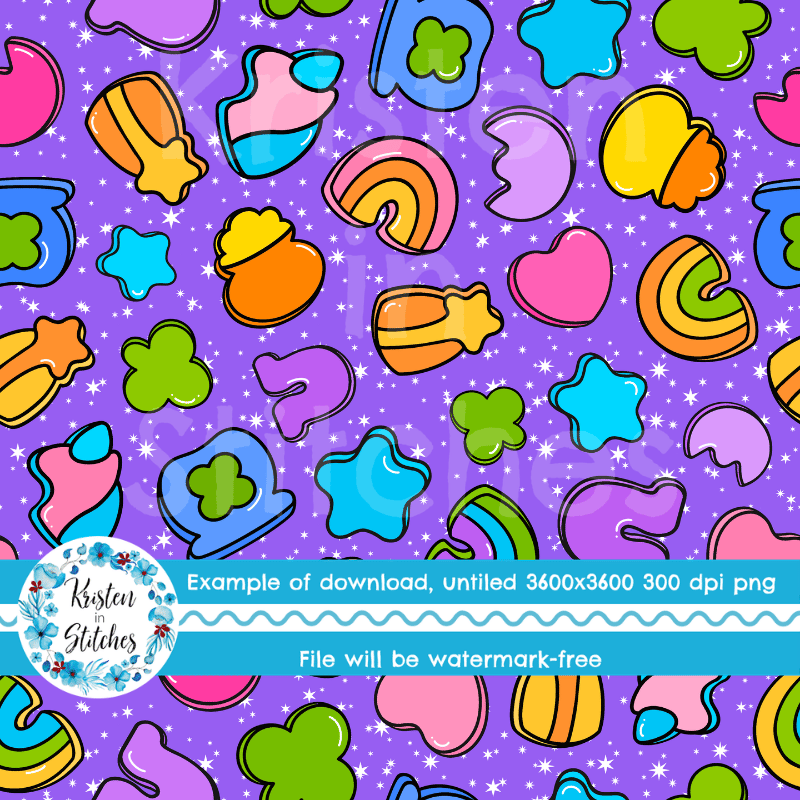 Lucky Charms Seamless Pattern, Saint Patrick's Day Good Luck Shamrocks and Rainbows