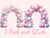 8 Pink and Silver Balloon Arch, Balloon Bunch and presents