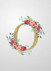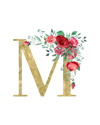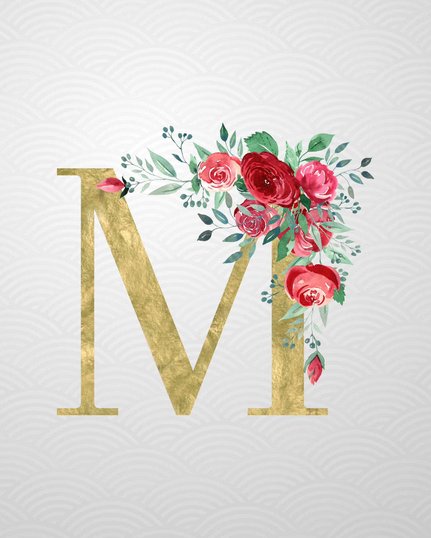 Watercolor Monogram Letter O and Watercolor Monogram Letter M. Gold letters decorated with red watercolor roses on a ton sur ton background and a white background. You will receive two prints per letter, a total of four prints.