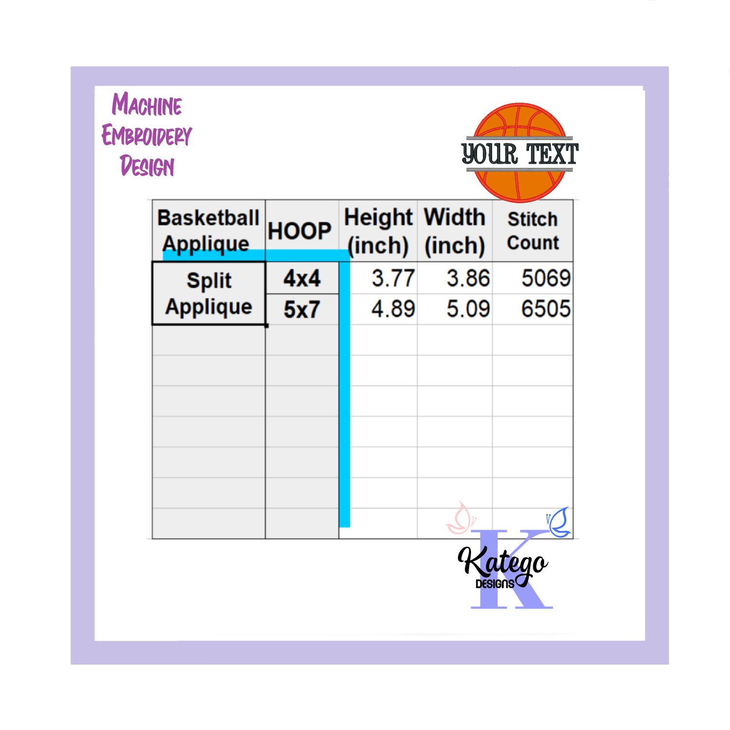 Basketball Split Applique Design. Basketball Embroidery Design. Basketball Embroidery ~ Machine Applique Embroidery Digital File