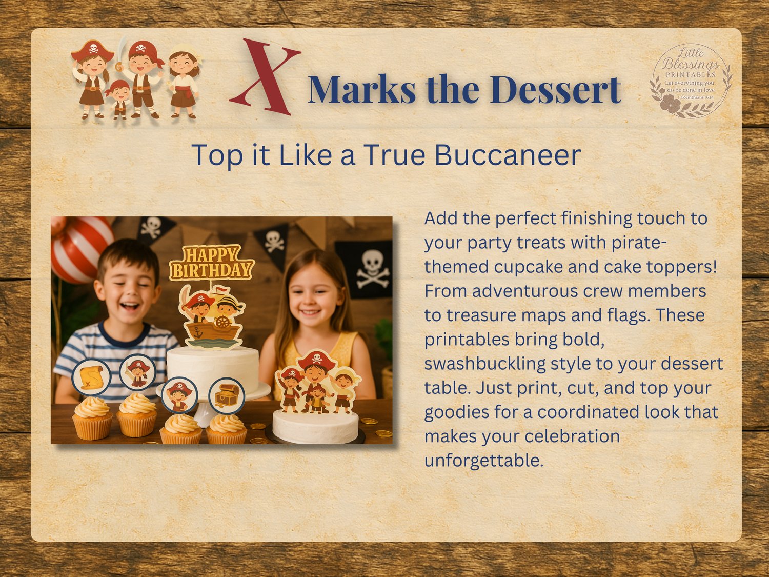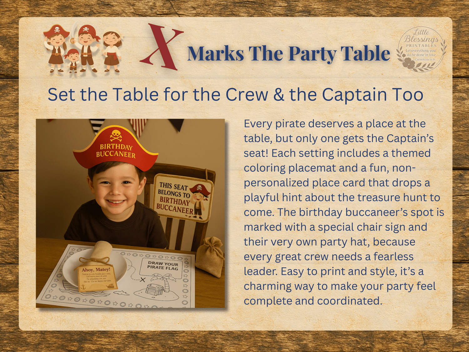 Everything is thoughtfully designed and instantly downloadable — so you can print, prep, and party without the stress. Whether you're planning a birthday party for your mini buccaneer or hosting a full pirate adventure, this kit makes it easy to create memories that feel magical.