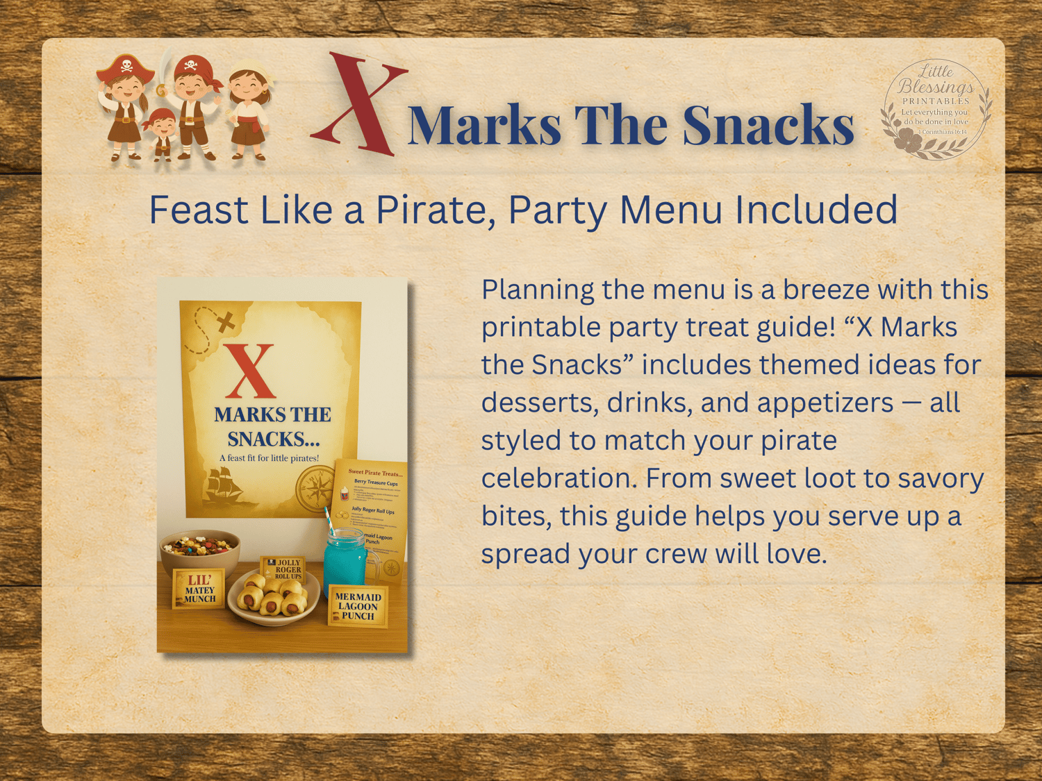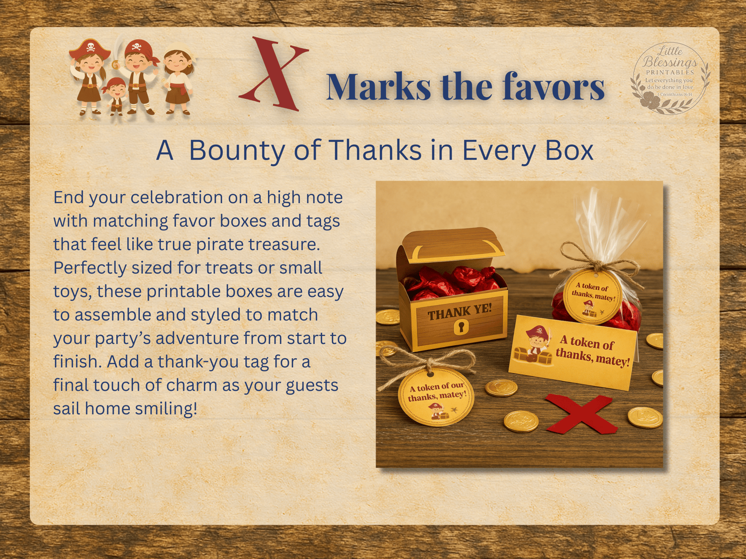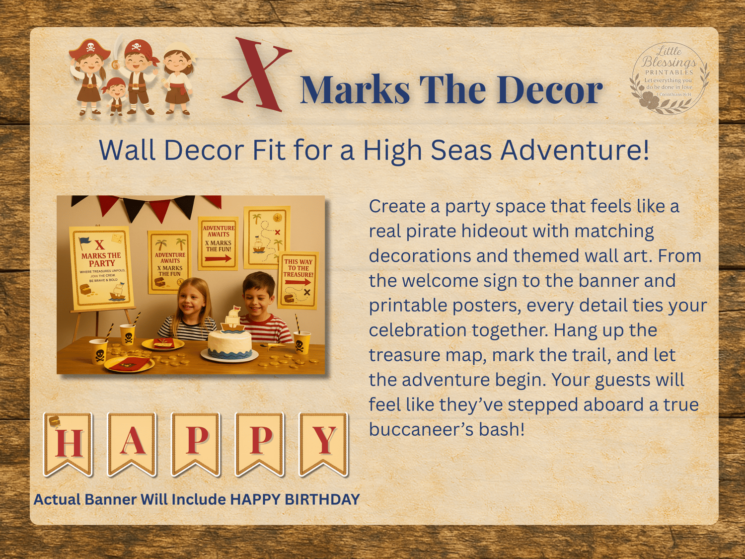 Ahoy there, party planner! Set sail for a swashbuckling celebration with the X Marks the Fun – Pirate Birthday Party Collection. Designed to make your little one’s day unforgettable, this printable set includes everything you need for a fully coordinated pirate-themed bash — from high-seas invitations to adventurous games and cake toppers.