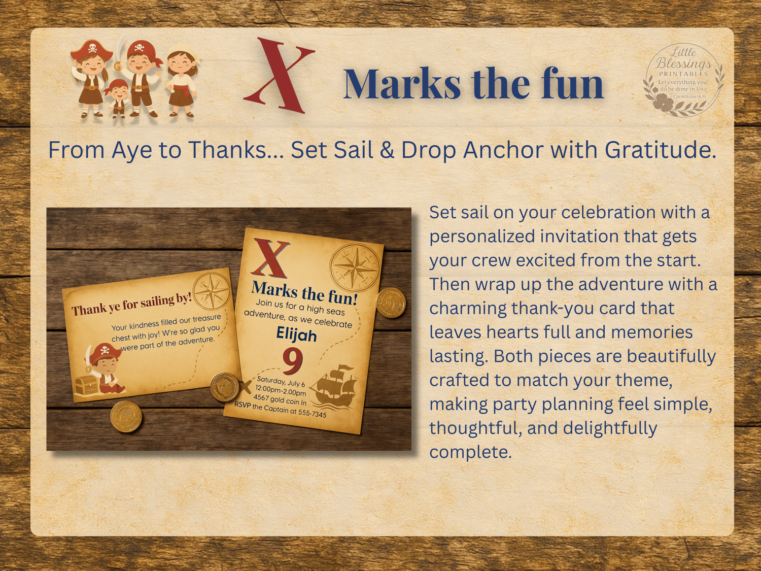 X Marks the Fun – Pirate-Themed Birthday Collection with Personalized Invitation & Thank You Note