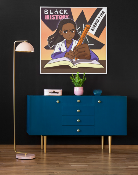 Celebrate Black History Month with this bold Black woman design—perfect for wall art, T‑shirts, stickers, cards, and more.