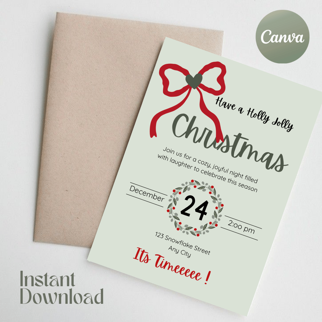 Holly Jolly Christmas Invitation - Editable Canva Template