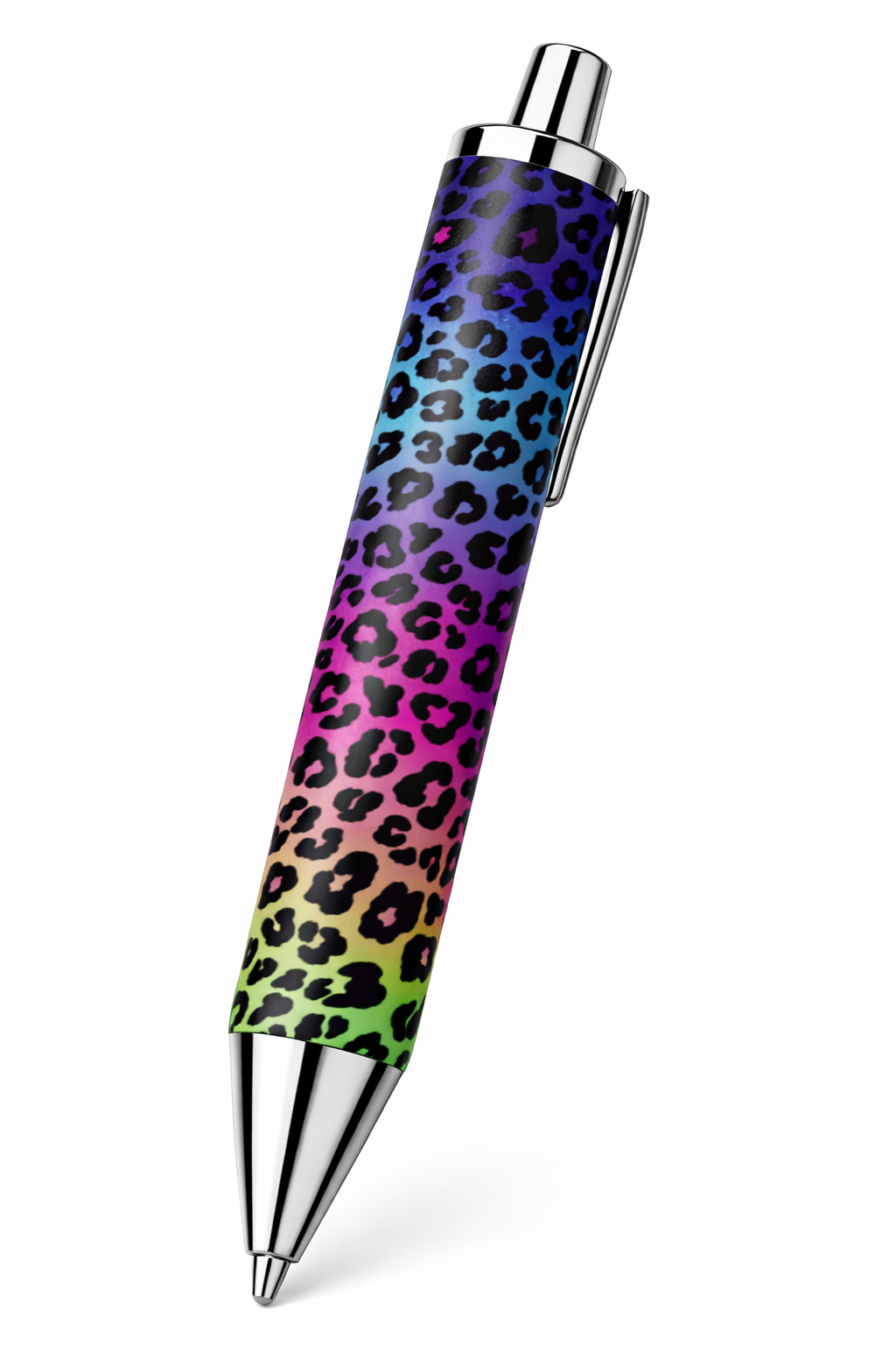 Featuring a smooth ombré blend of purple, blue, pink, and neon green with classic black leopard print, this design delivers a vibrant, trendy look that stands out instantly.