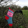 Do you love colourful patterned Christmas Stockings but are intimidated by stranded colourwork? Mosaic knitting is the solution! It is a fun and easy way of knitting with two colours to create a colourwork pattern which looks much more complicated than it is. The beauty of mosaic knitting is that it only uses one of the yarns at a time, while the other waits at the beginning of the round.