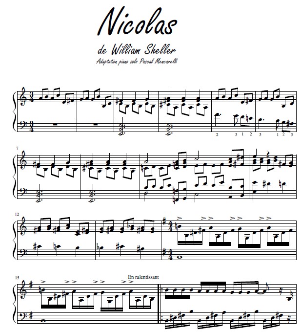 William Sheller - Nicolas - Partition Piano Solo