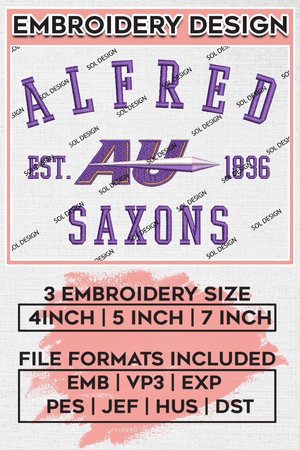 Alfred Saxons NCAA College Football Team Est 1836 Logo Embroidery Designs, Ncaa Embroidery Files, NCAA Alfred Saxons Team Logo Embroidery, Game Day Machine Embroidery Design, Digital Download
