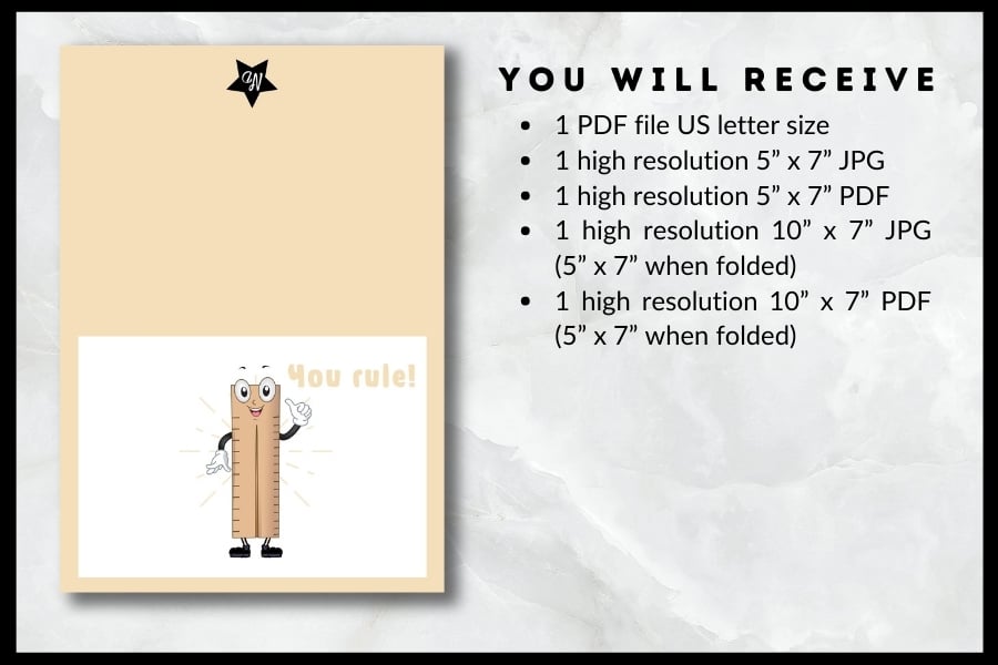- 1 high resolution 10” x 7” PDF (5" x 7" when folded)