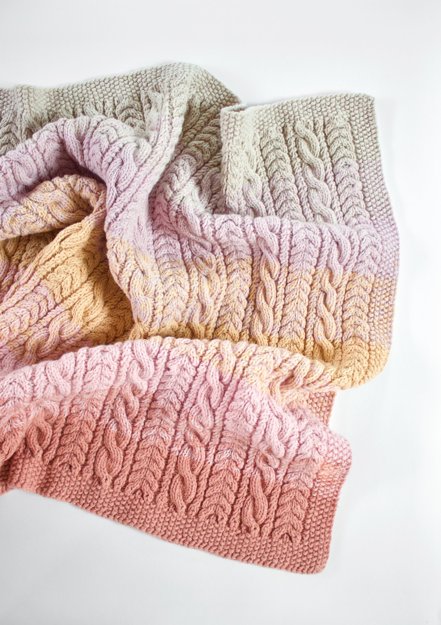 Hati is a cabled blanket featuring a rich, warm texture. It is perfect as a pram blanket and will make a wonderful gift for any new little one.