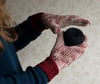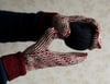 Pihta mittens are worked from the bottom up in stranded knitting, apart from the single color cuff. The stitch pattern is simple and rather easy to memorize. There are mostly only one or two consecutive stitches in one color, so you can keep the tension of the yarns constant with minimal effort.