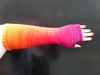 The mitten has been designed for the Vivid Fibre Arts fingering weight gradient yarns. Sample shows a Medium size knit using Vivid Fibre Arts Gemini MCN XL (264 yds / 241 m per 60g) in the ‘Sonrisa’ colourway. This yarn is also available at standard 176 yds / 161 m per 40g. For yardage recommendations see Size options below.