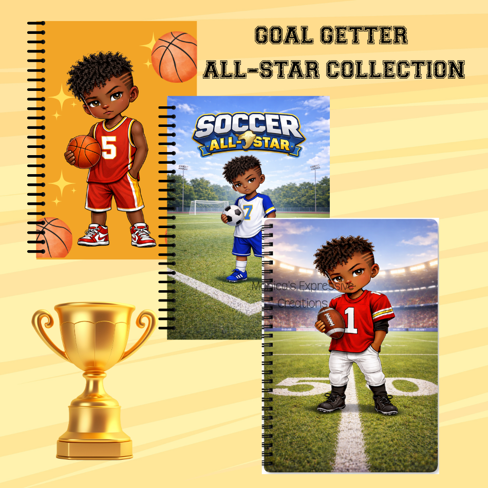 The Goal Getter: All-Star Collection is designed for boys, teens, and anyone who loves sports and staying motivated. Whether it’s used for keeping track of game dates, sketching out game plays, taking school notes, journaling, or writing down goals, this notebook is made to support focus, creativity, and confidence—on and off the field.