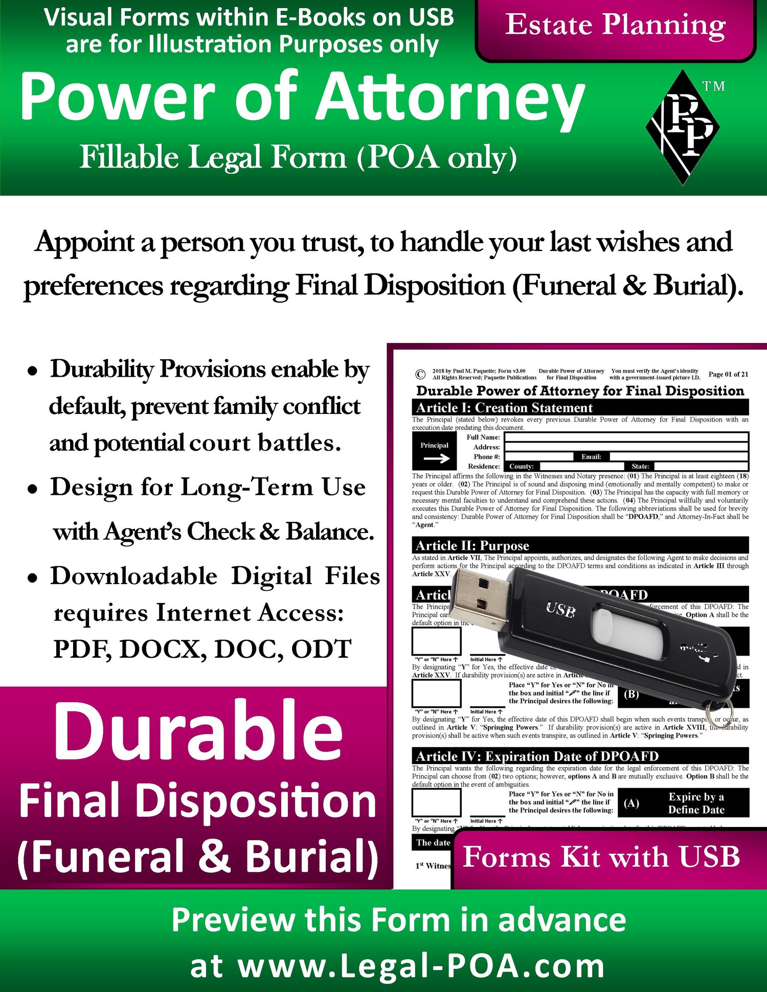 Form & USB ( Legal Kit ) - Durable Power of Attorney for Final Disposition