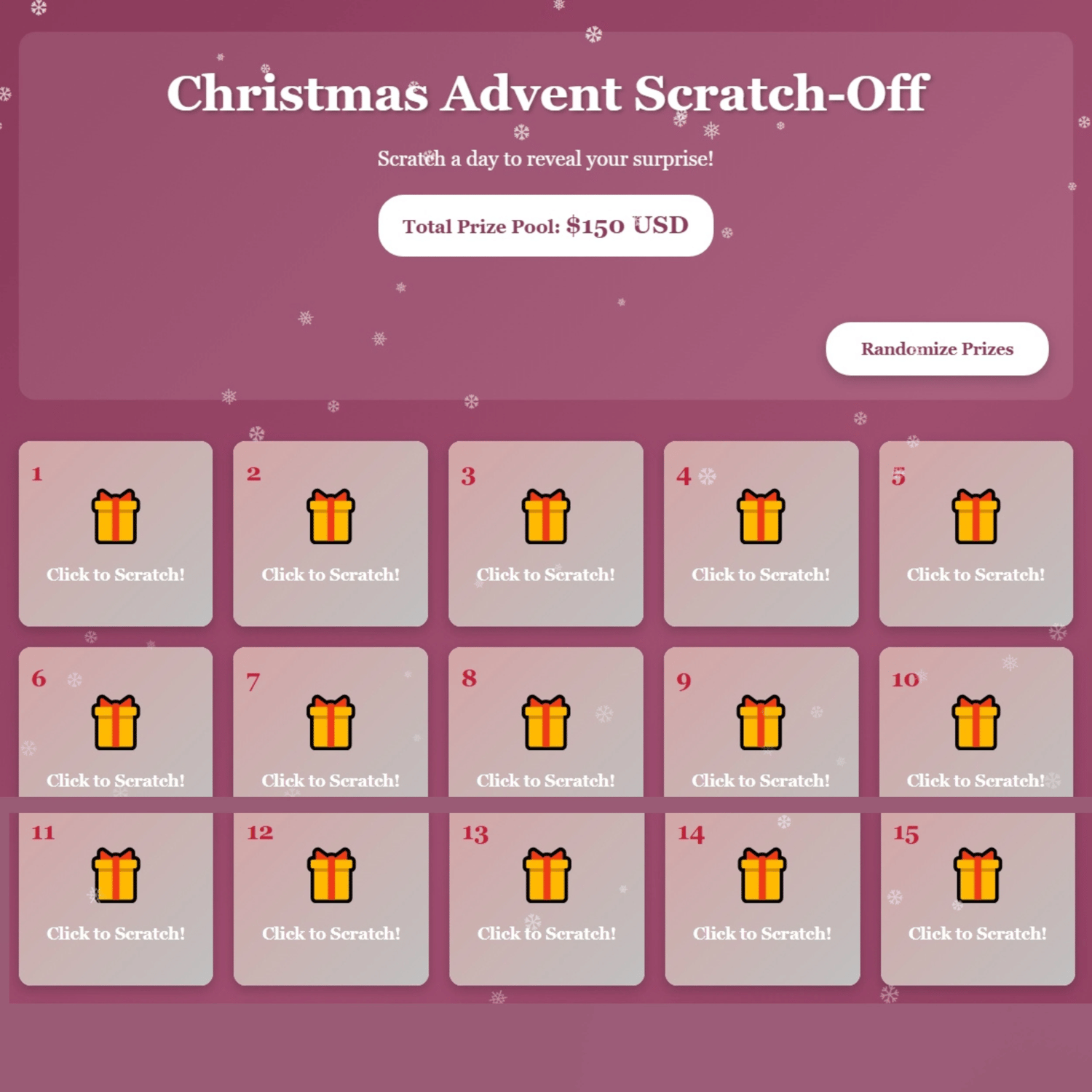 Celebrate the season with a fun chance to win some extra Christmas bucks! A handful of Advent squares hide surprise cash prizes—$10, $15, $25, or $50.