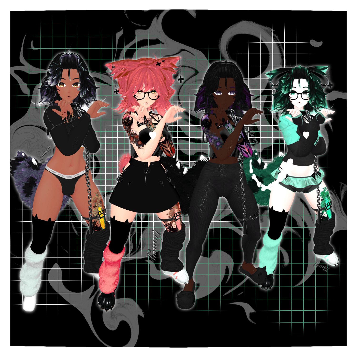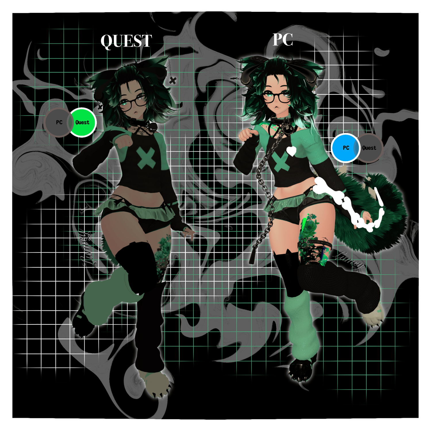 - Quest Differences- No Hue Shifts, No Glow Stuff. Quest Physics are on Chest, Ears 1, Ears 2, Hair Side, Sleeve L & Sleeve R.