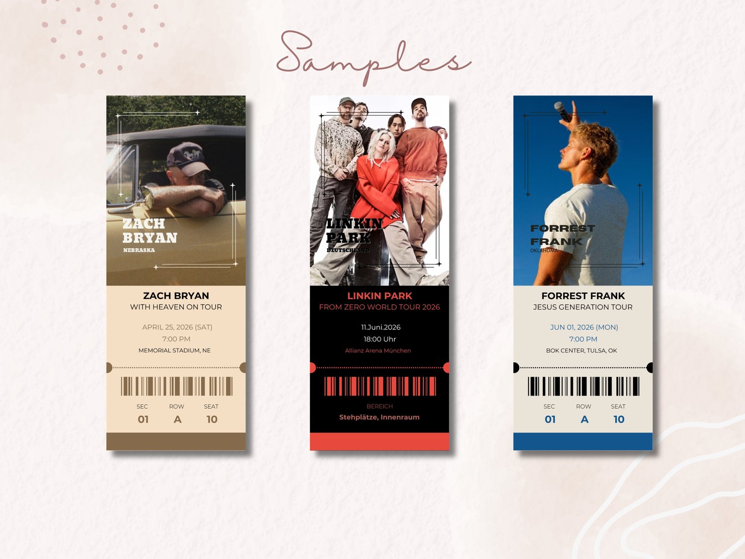 ✓ 1 Editable Concert Ticket Template (Canva link)