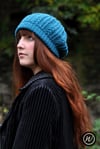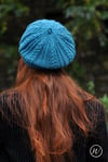 This is a cute little tam that sits jauntily on the head, with a folded brim and optional I-cord detail at the crown.