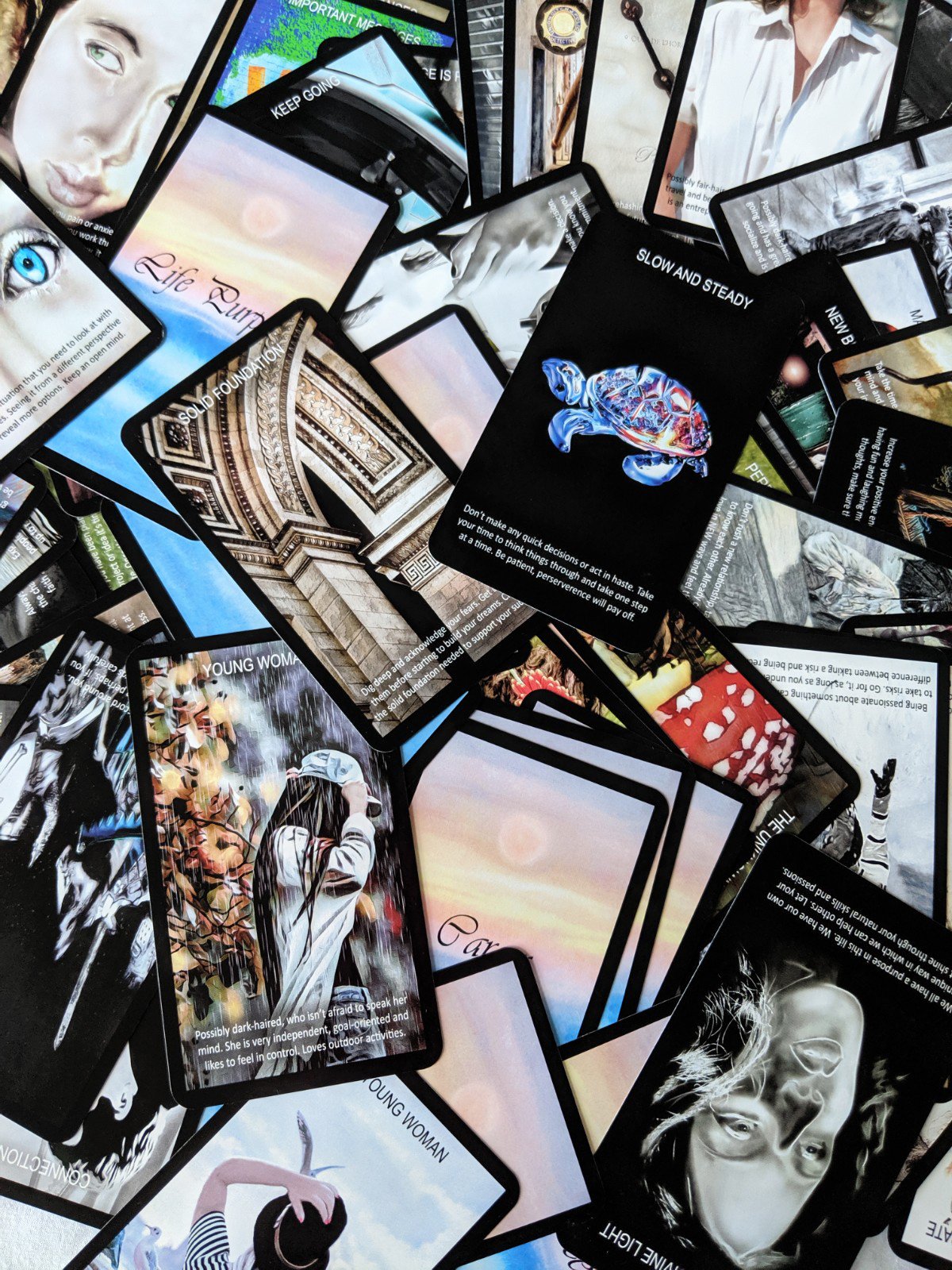 This was the very first deck I ever created back in 2012, which started my journey of creating tarot cards. It's a 72-card deck with meanings printed on the front for easy, intuitive readings. Available in two sizes, tarot or ex-large. I included theme cards and guidance cards and offer a choice of back cover. This deck is perfect for beginners, intuitive readers, and daily guidance.