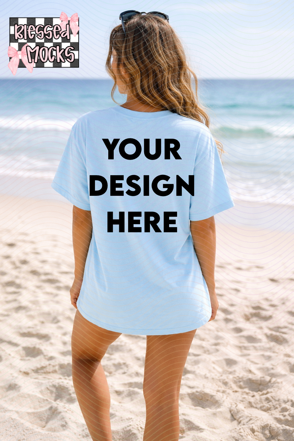 Gildan Light Blue T-shirt-Back-Beach Mock Up