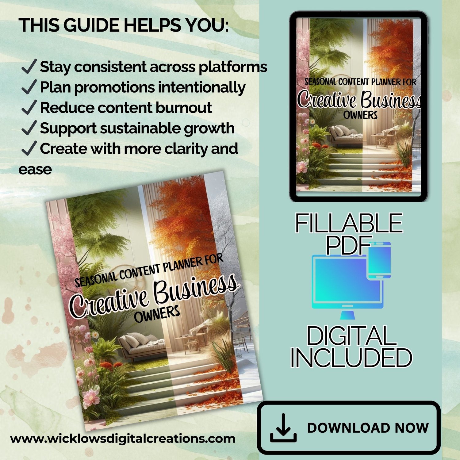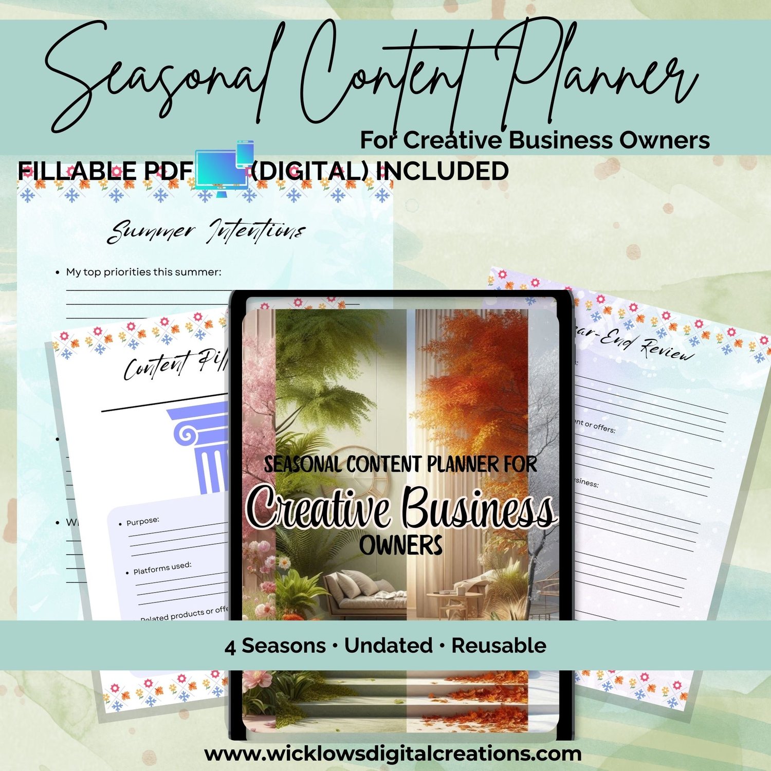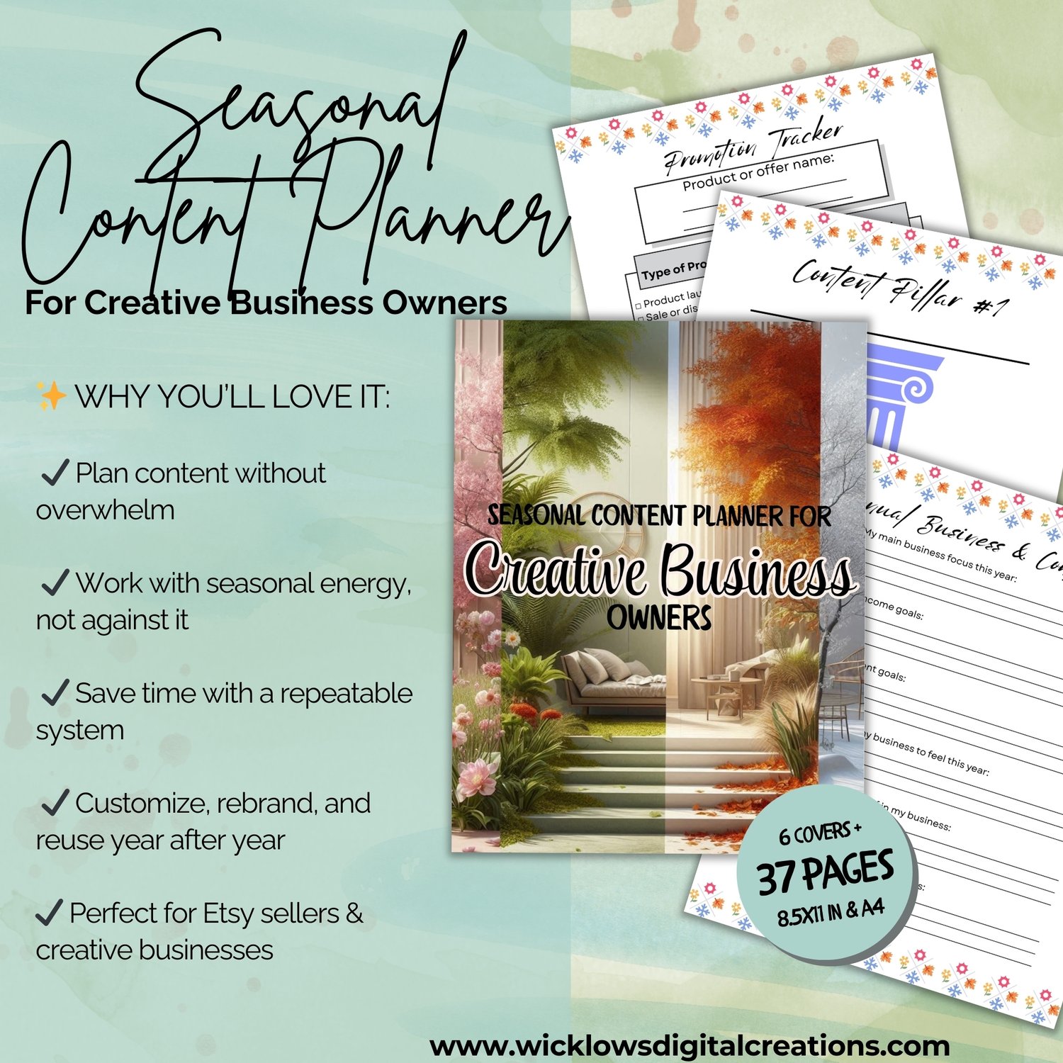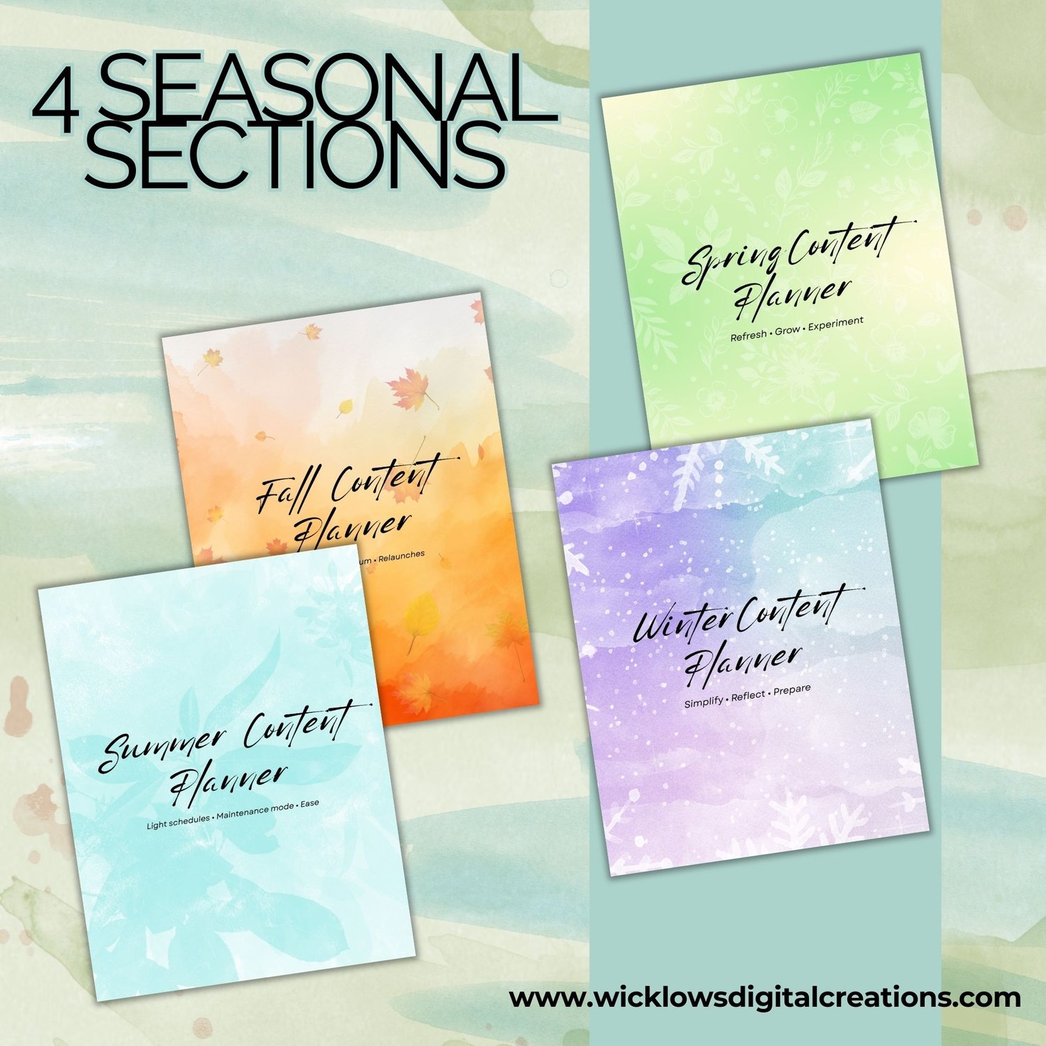 This is a complete, undated 4-season content planning system designed to support creative business owners who want flexibility, clarity, and ease — whether planning on paper or digitally.