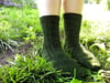 This pattern assumes knowledge of working in the round, basic cables, and basic sock construction. Both charts and written directions are provided for all stitch patterns.