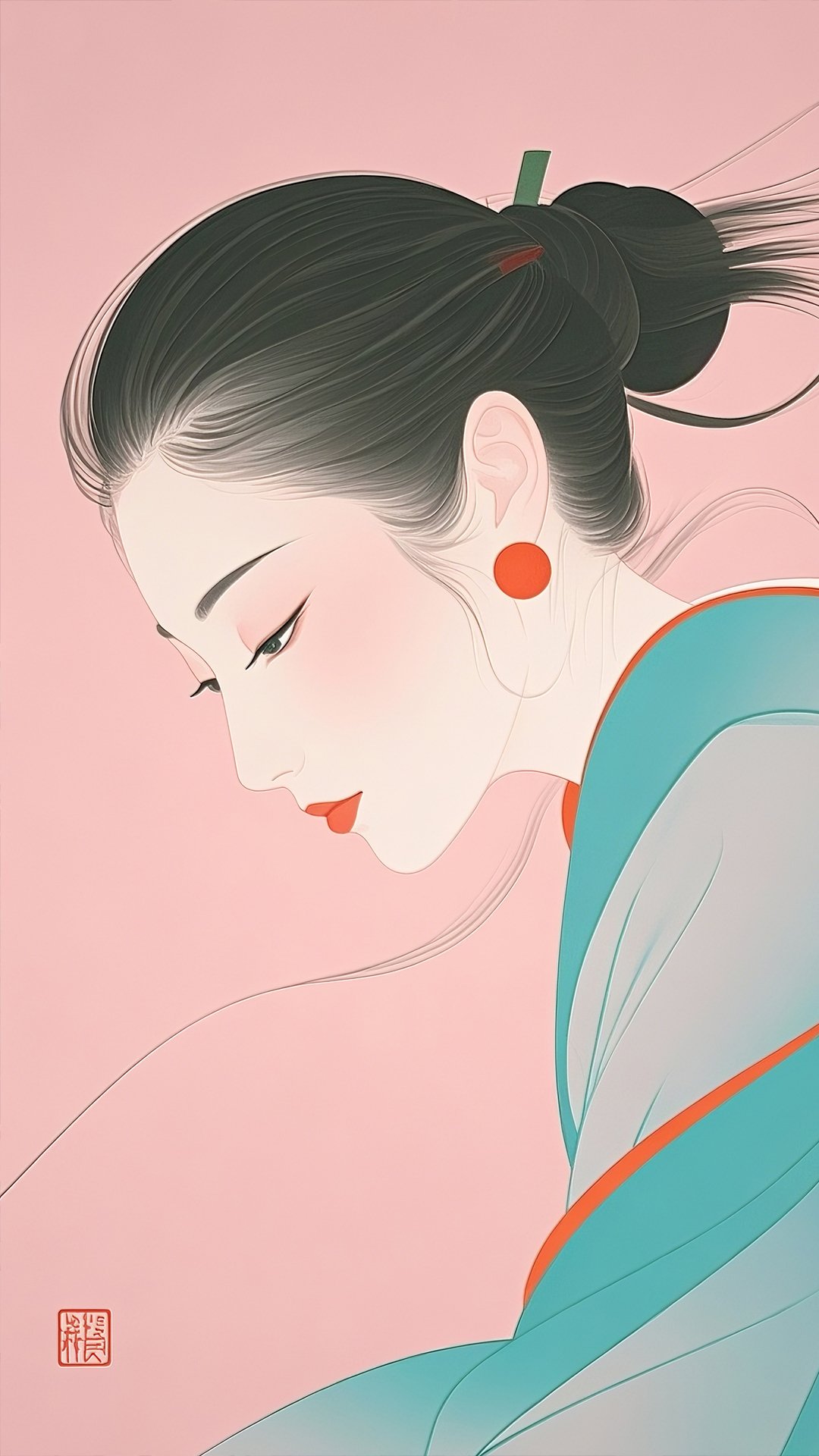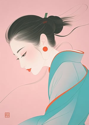 A serene side profile of a woman in elegant minimalist Japanese style.