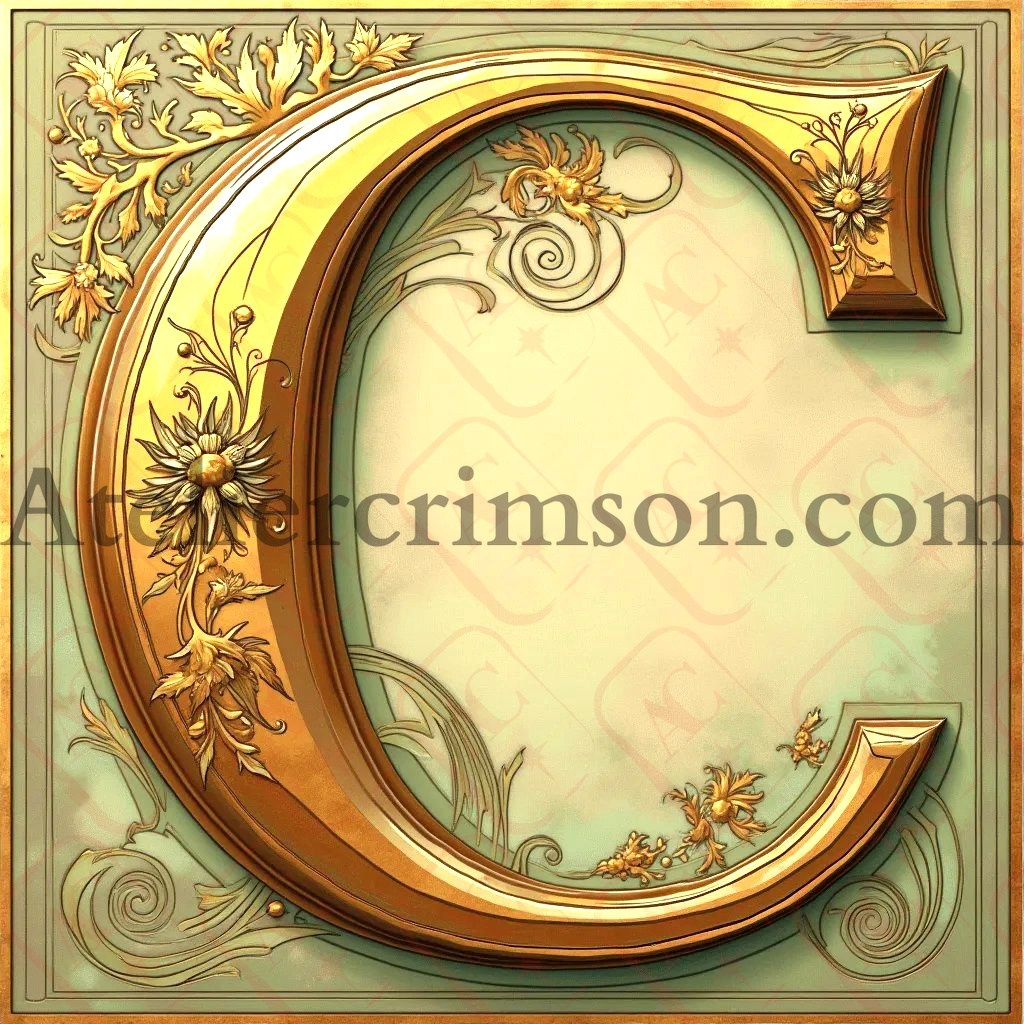 The letter C gold metal art nouveau Download Now this high quality AI-generated image, perfect for adding a touch of tranquility and creativity to any space.