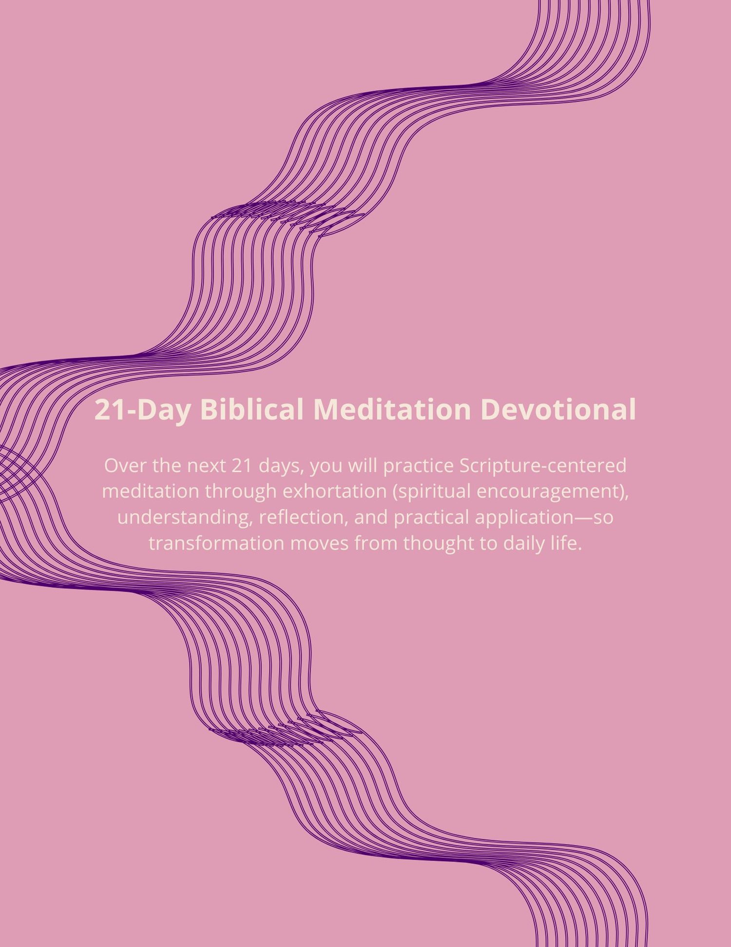 Biblical meditation is not about emptying your mind—it’s about filling it with truth. The 21-Day Biblical Meditation Devotional is designed to help you slow down, engage Scripture more deeply, and allow God’s Word to shape your thoughts, emotions, and daily life.