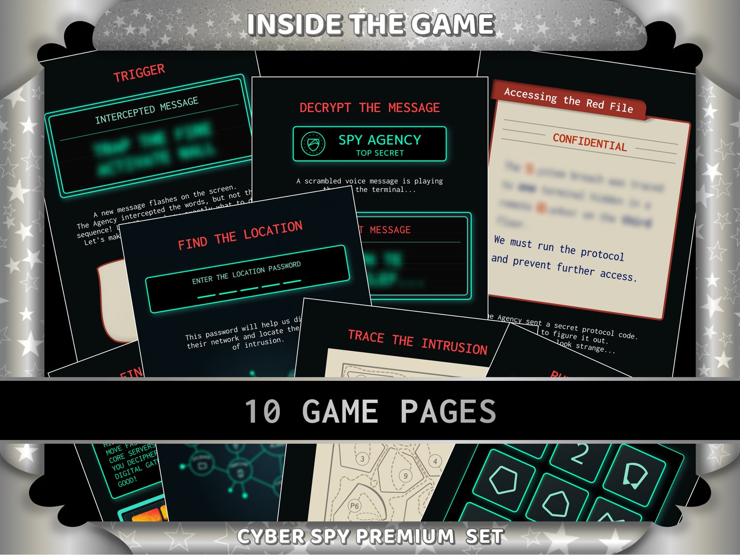 The pages are dark and immersive by design β created to look like a spy computer interface. They may use more printer ink than typical worksheets, but the result is a striking, realistic mission feel that draws players into the story.