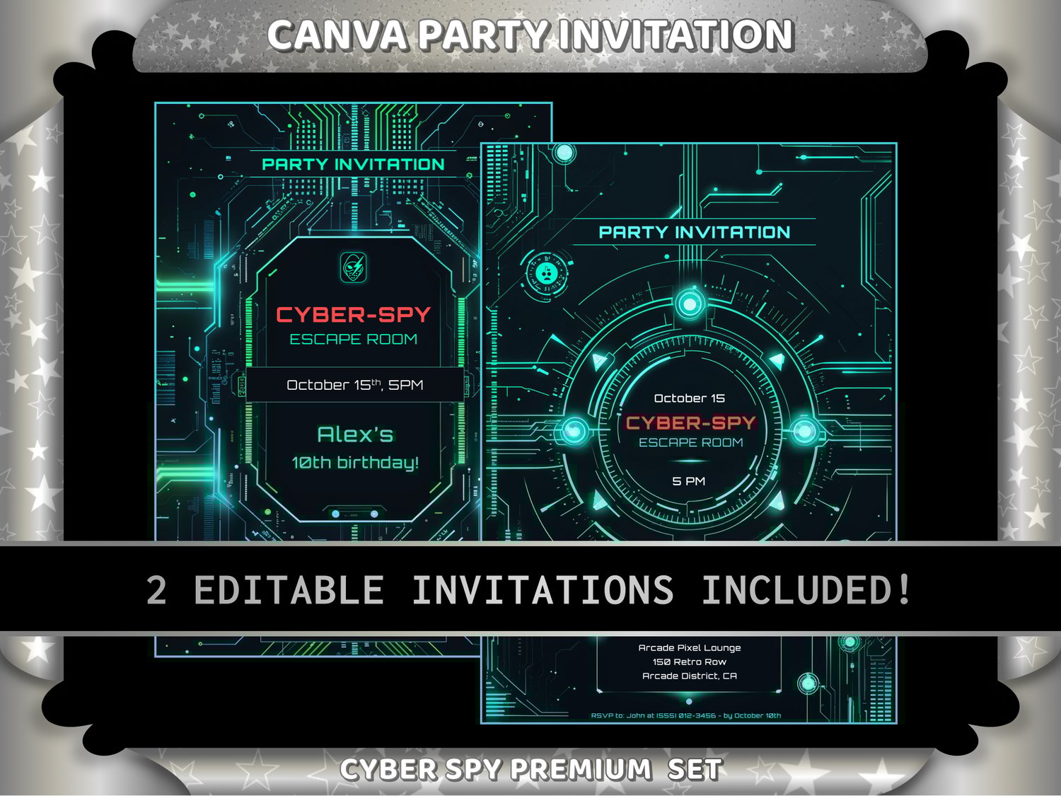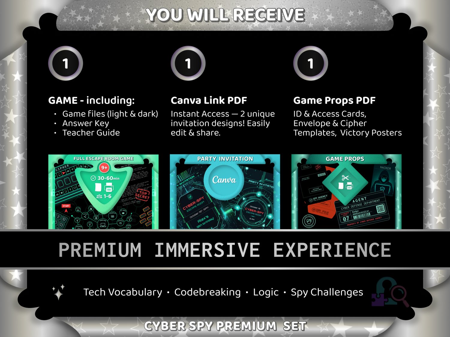 Cyber Spy Escape Room Premium Bundle β Printable Game Operation Codestorm + 2 Canva Invitations + Props Pack