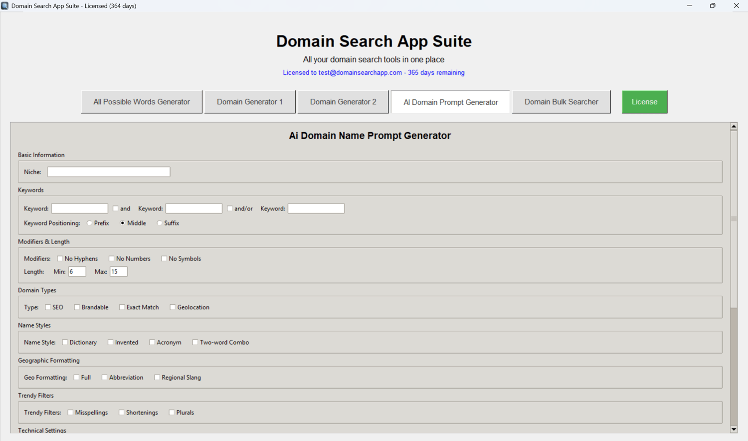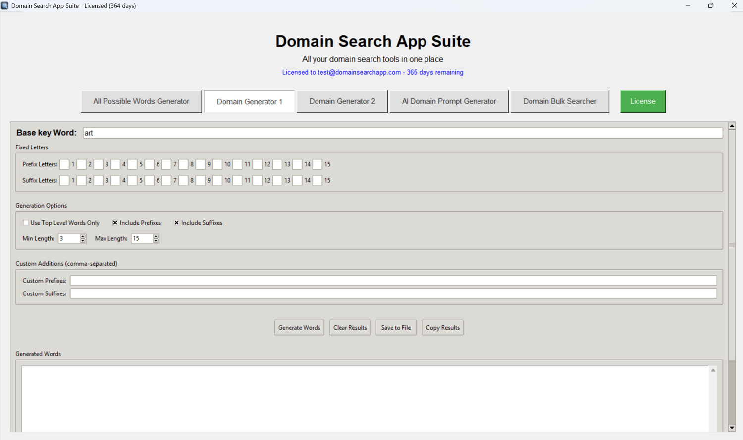 Whether you’re searching for brandable names, managing client portfolios, or running mass checks for investment opportunities, the Domain Search App gives you the freedom and performance you need without the hassle of online limits.