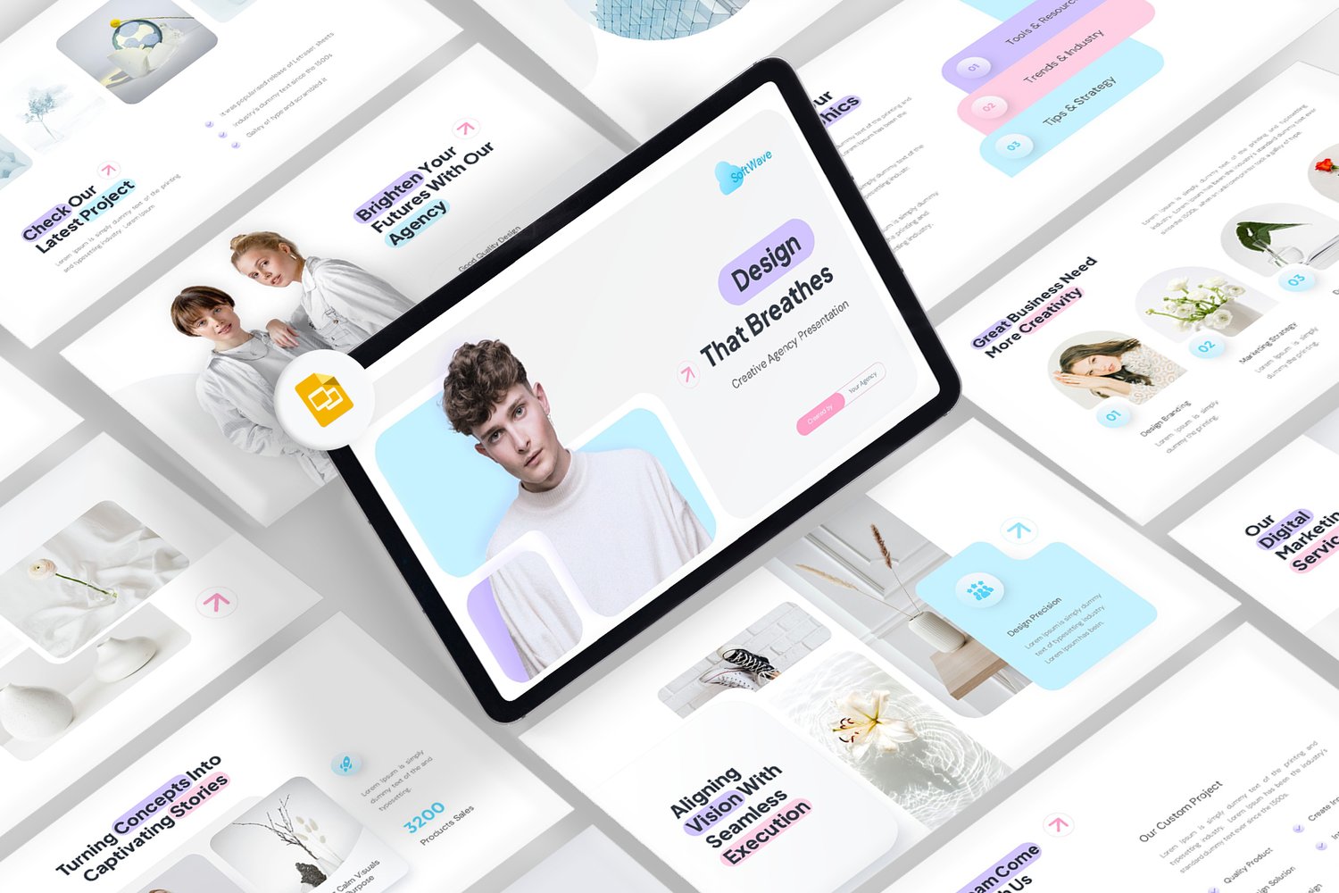 SoftWave - Creative Agency Presentation blends modern agency structure with cloud inspired softness and calm pastel tones for a clean, refined look.