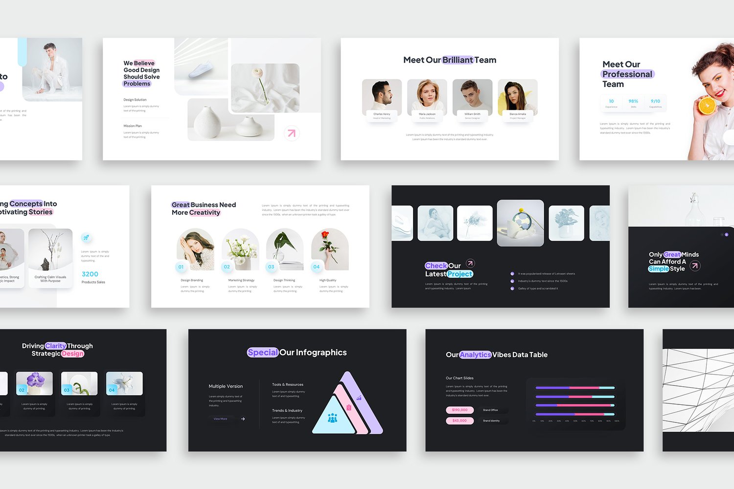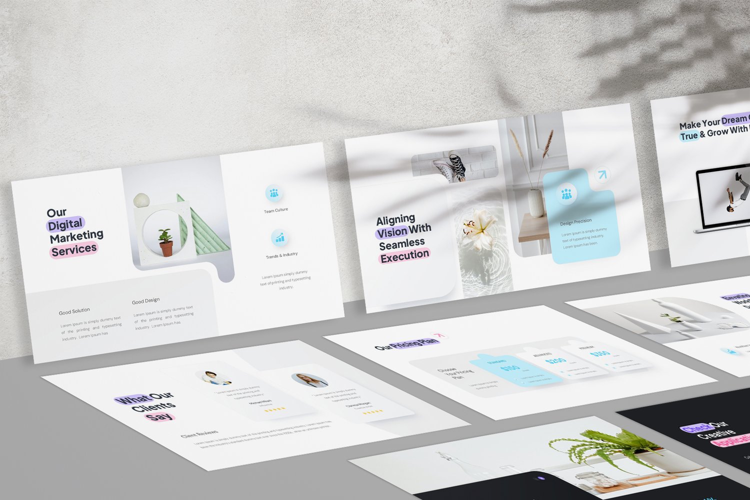 Perfect for client pitches, creative portfolios, pitch decks, marketing presentations, and company overviews.