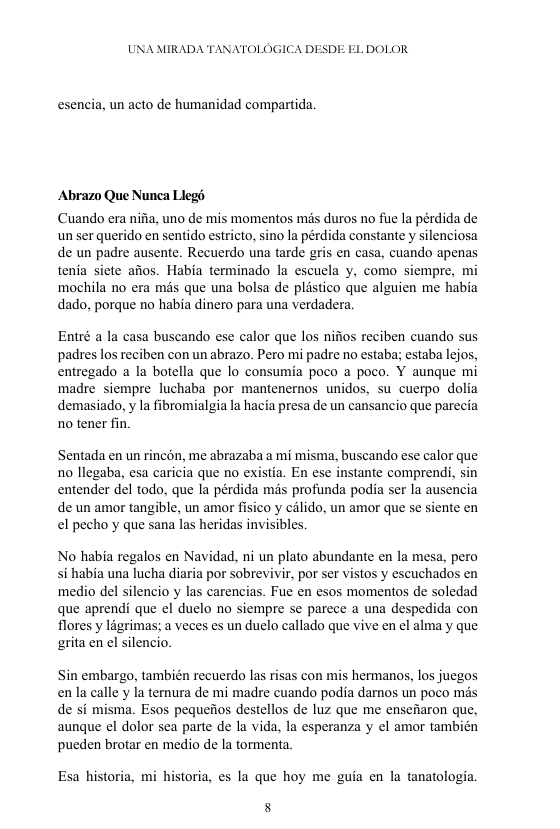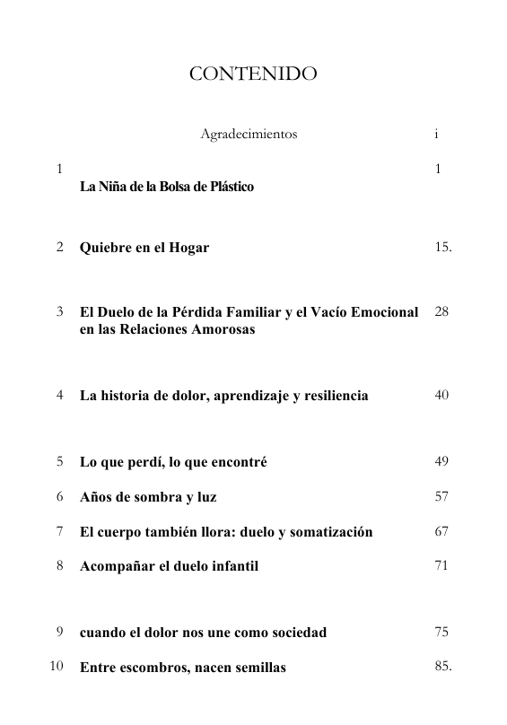 Este libro es una invitación a mirar el dolor de frente, con compasión y sin prisa. A través de una narrativa sensible y profundamente humana, la autora —psicóloga y tanatóloga— nos guía por los caminos del duelo, la pérdida y la reconstrucción interior.