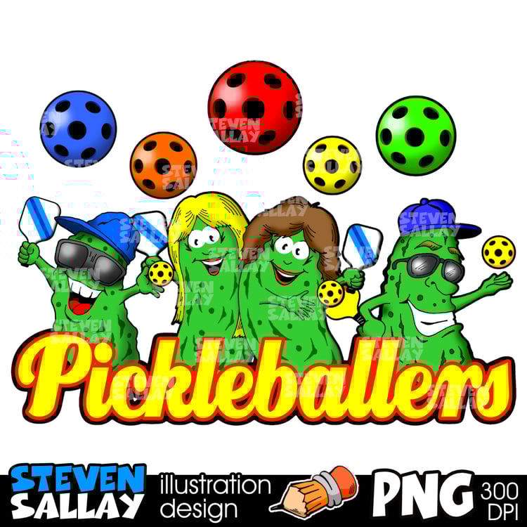 Professional pickleball graphic logo clipart featuring paddles and ball in a clean, bold cartoon style. Perfect for t-shirts, decals, stickers, mugs, hats, print-on-demand products, team branding, social media graphics, and sports merchandise. High-quality PNG with transparent background, ideal for designers, crafters, and pickleball enthusiasts.