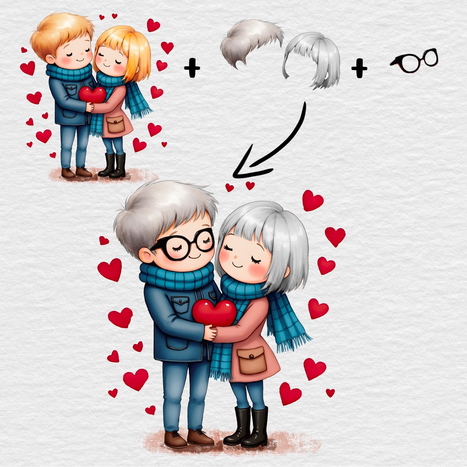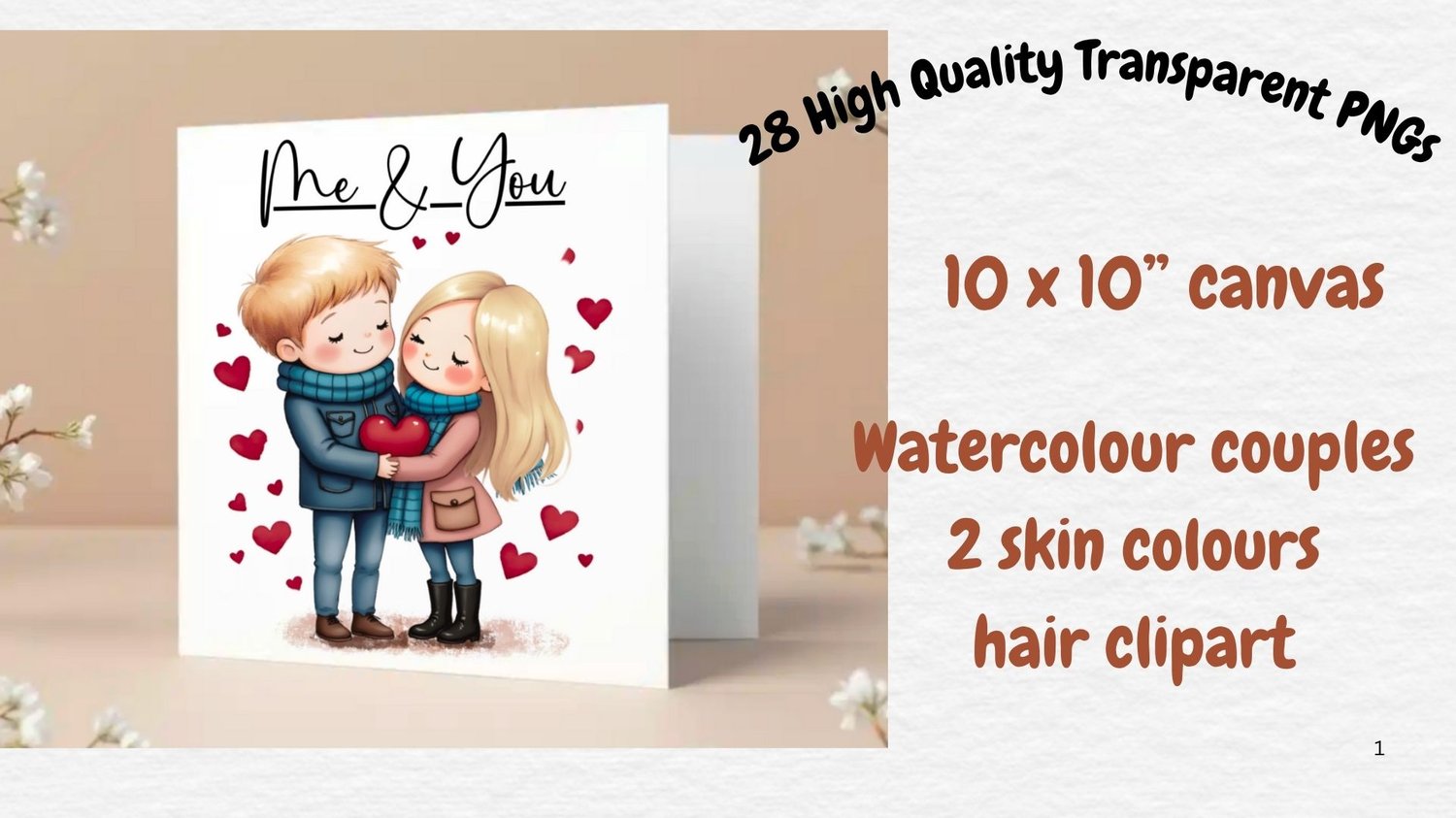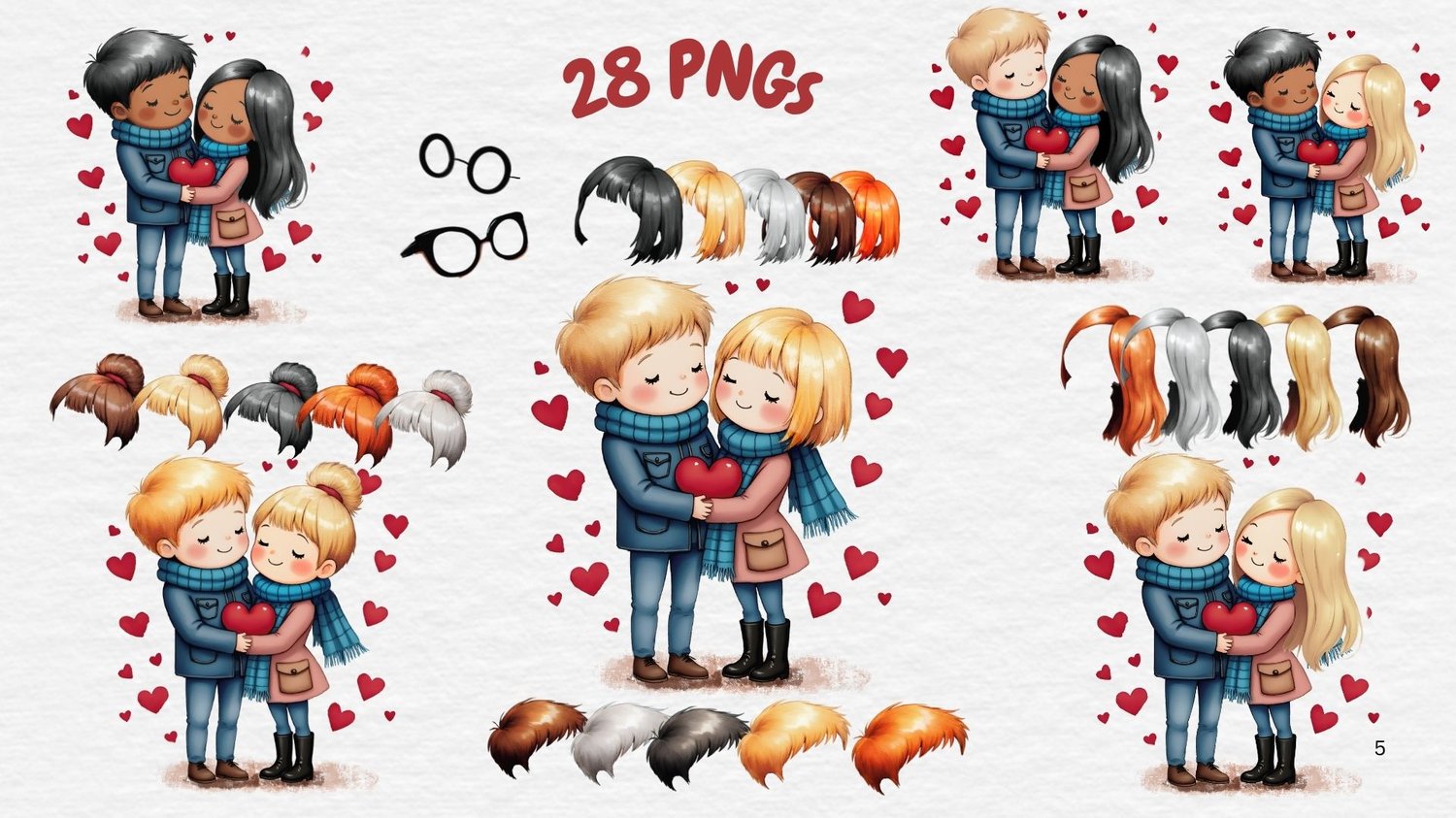 Valentines couples. Readymade files + hair and glasses clipart to customise & make your own couples. 2 skin colours. 28 PNGs. Sublimation, print. Instant download.