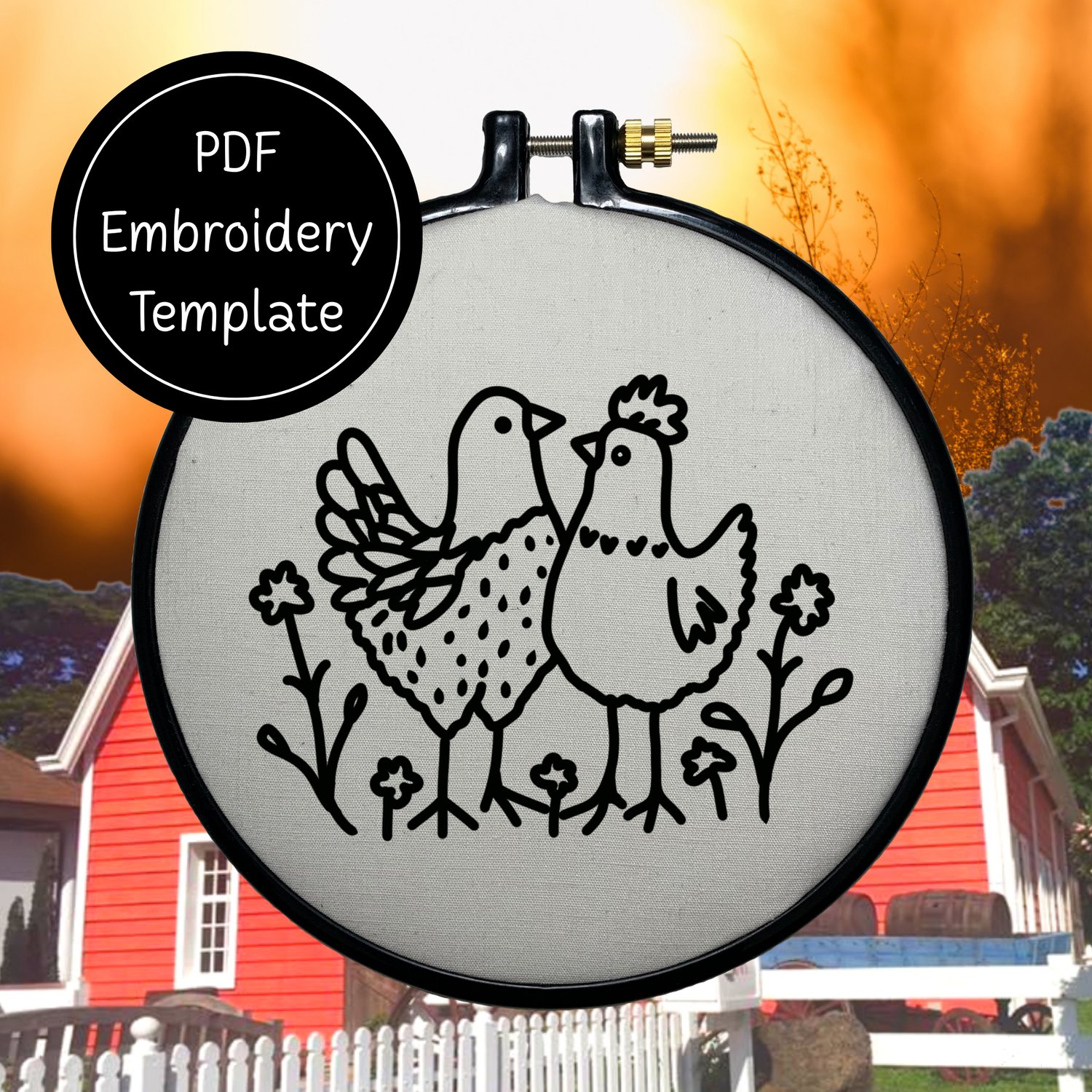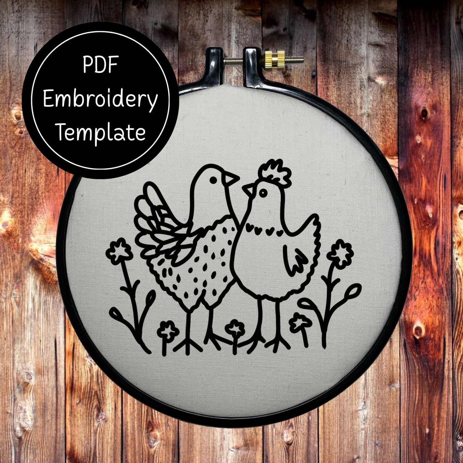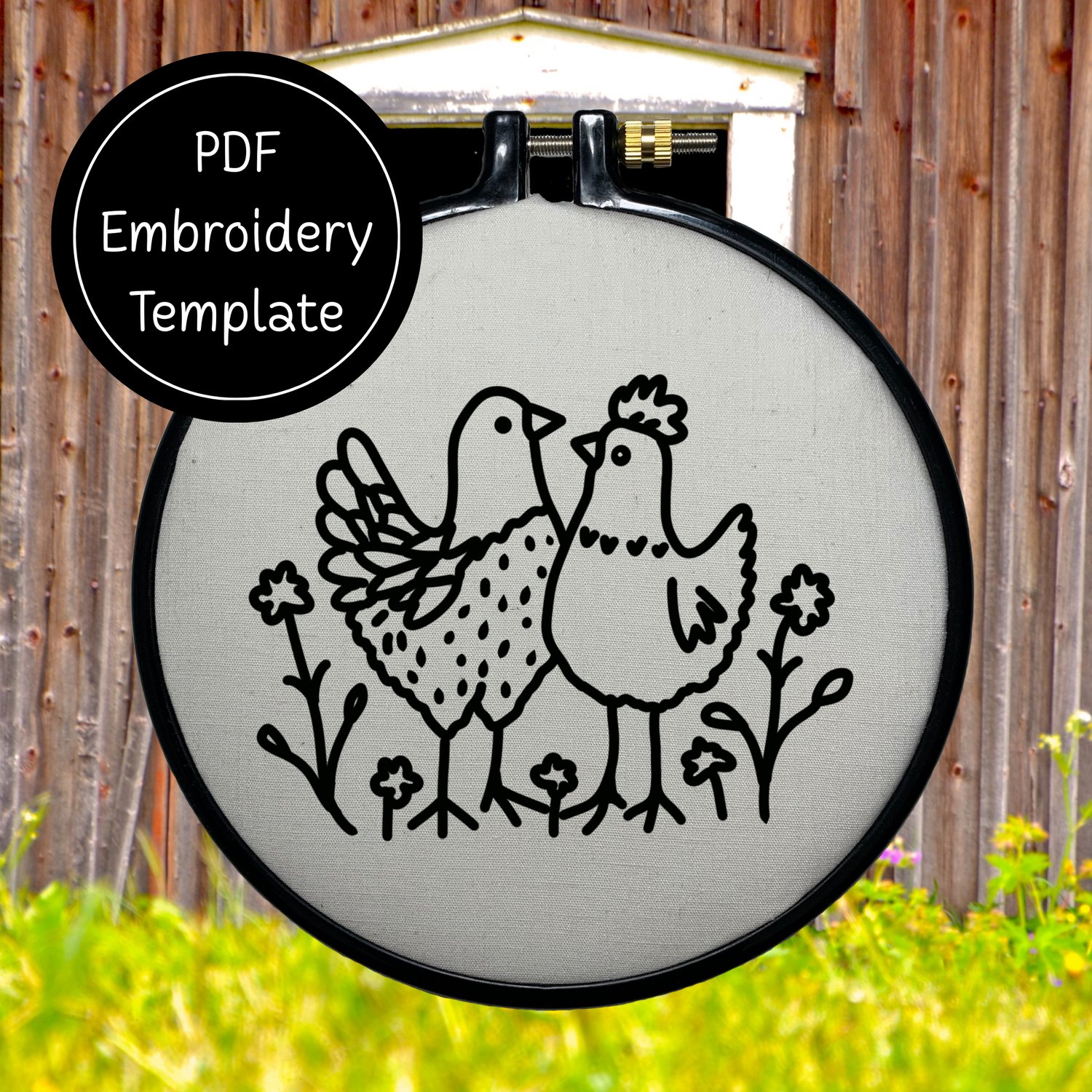 Chickens Hand Embroidery Pattern DIY Farm Animal Design For Hand Stitching - Instant Download