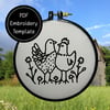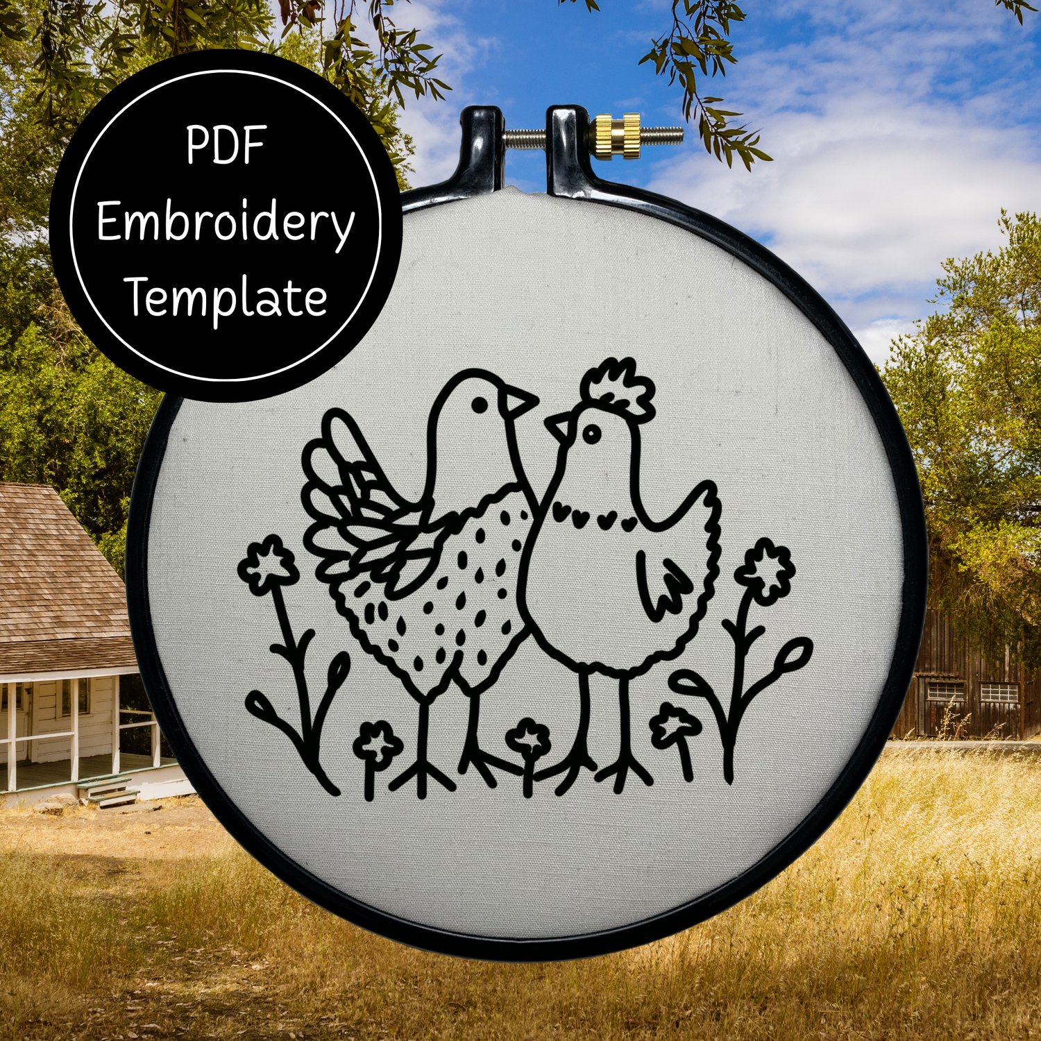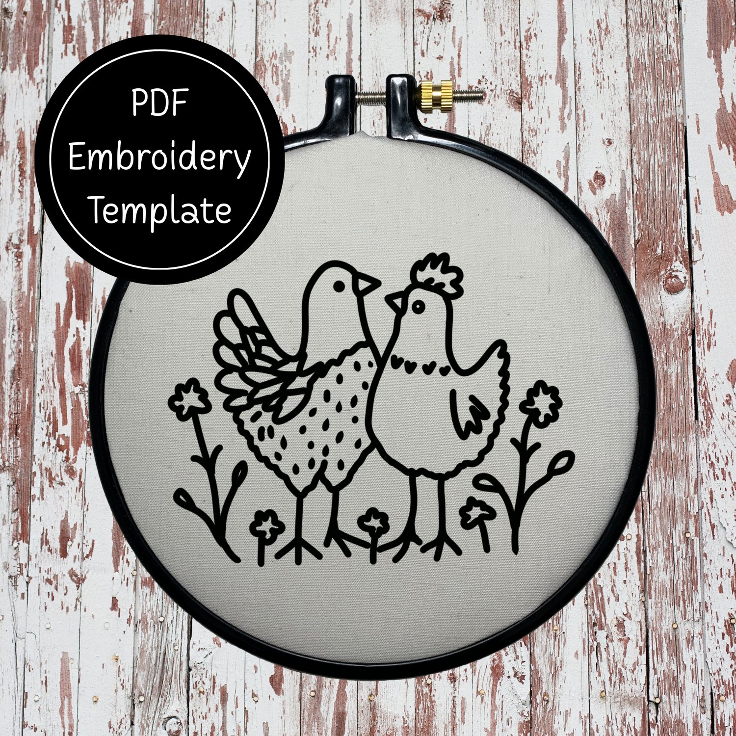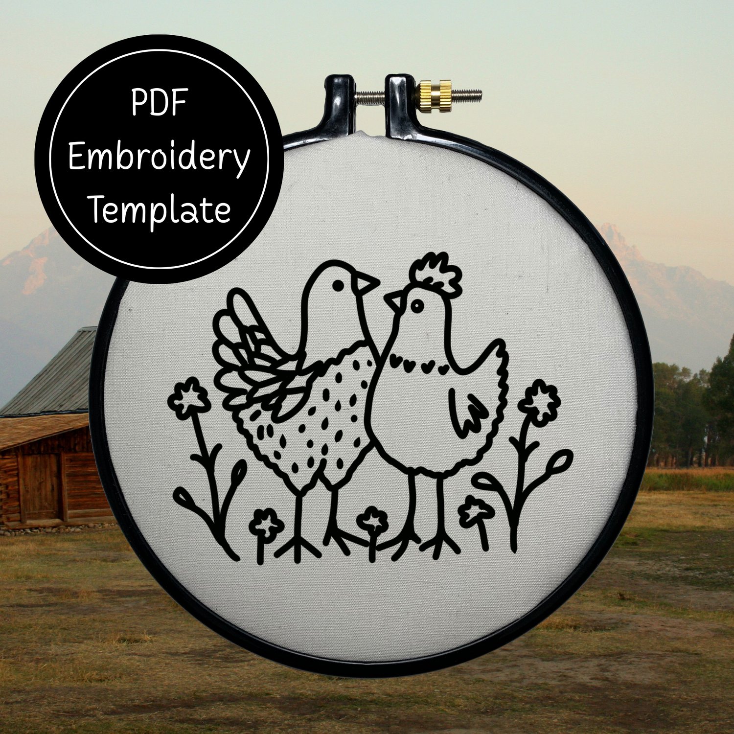 Chickens Hand Embroidery Pattern DIY Farm Animal Design For Hand Stitching - Instant Download
