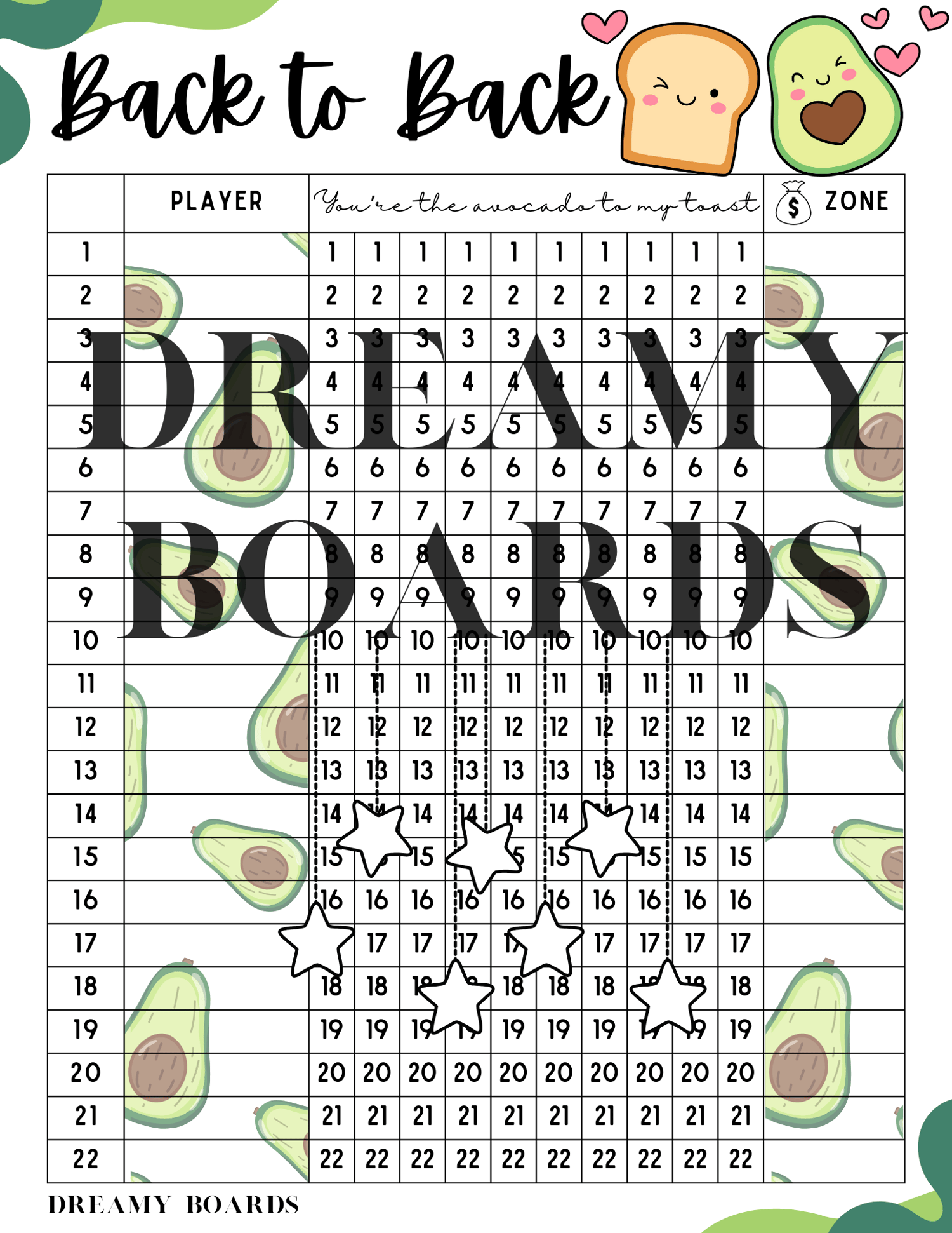 Printable bingo board.