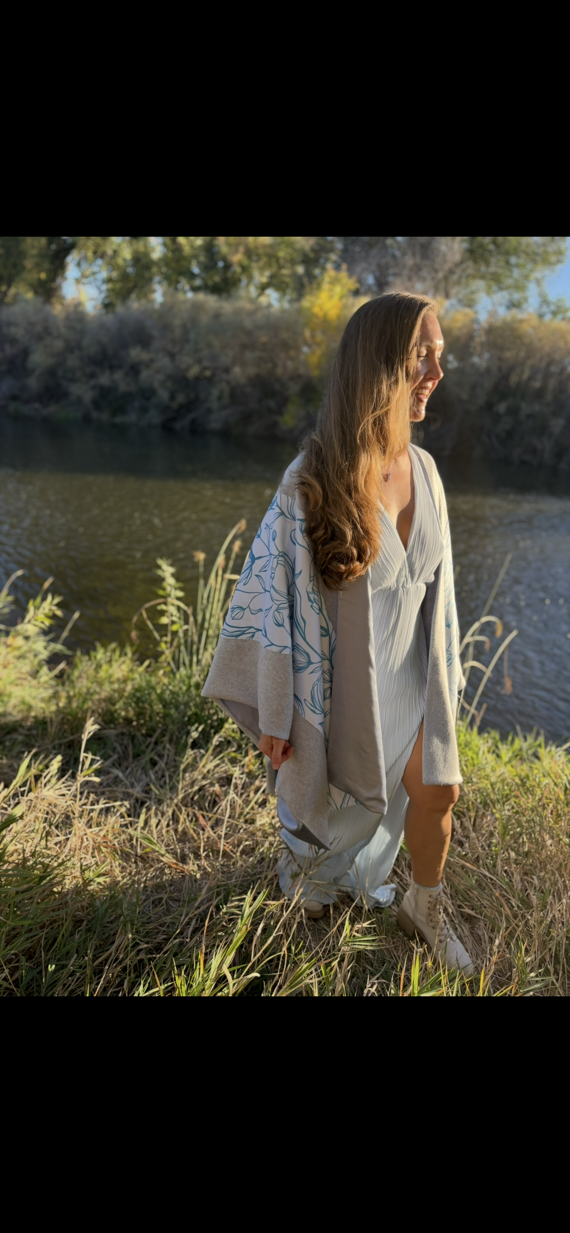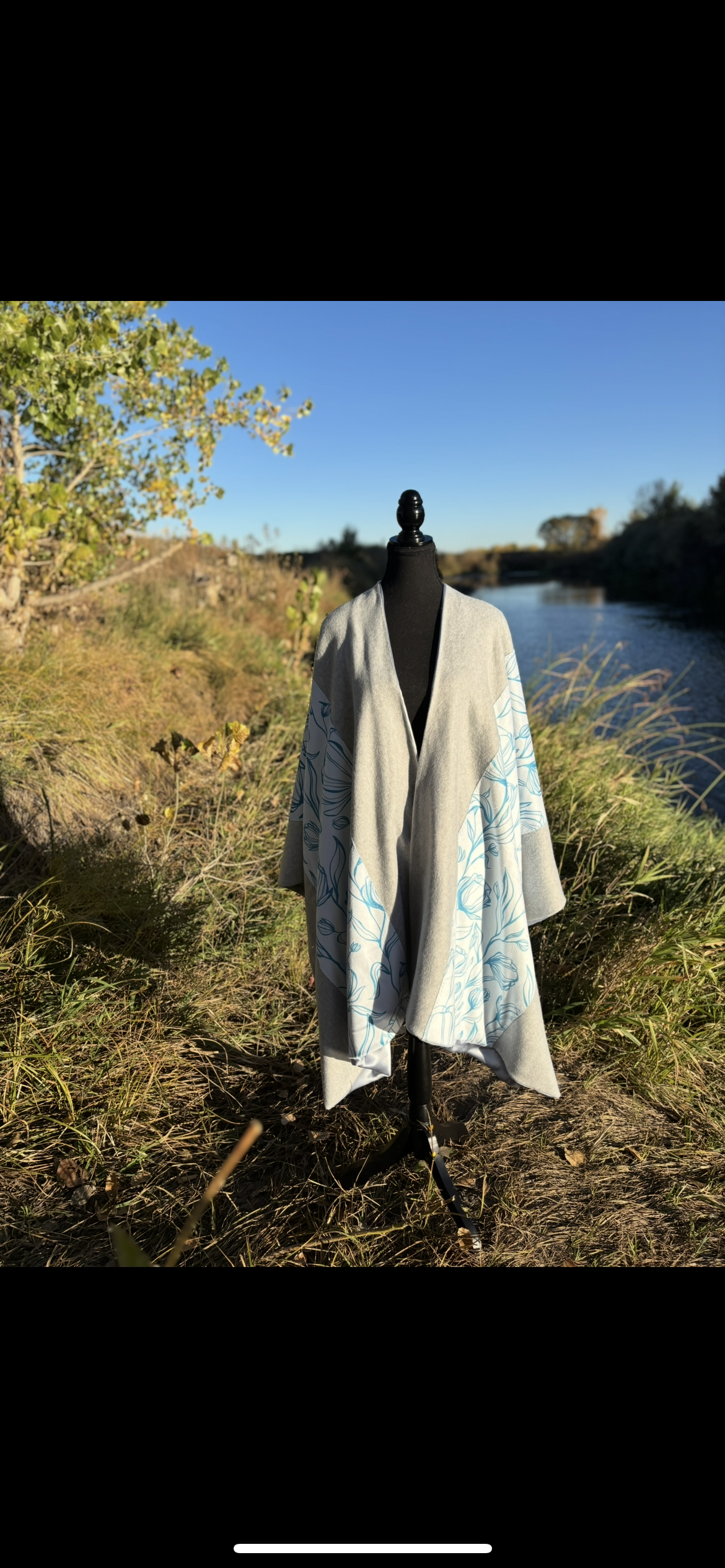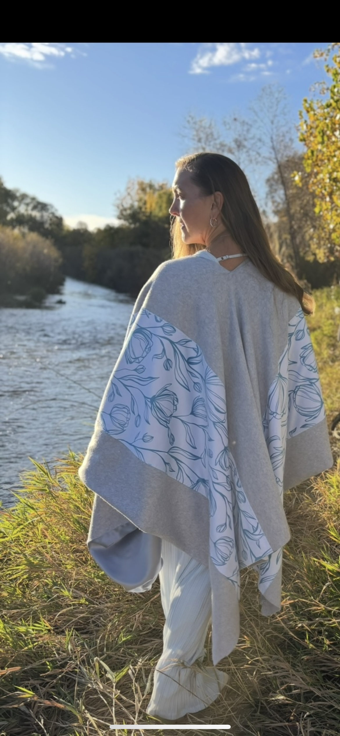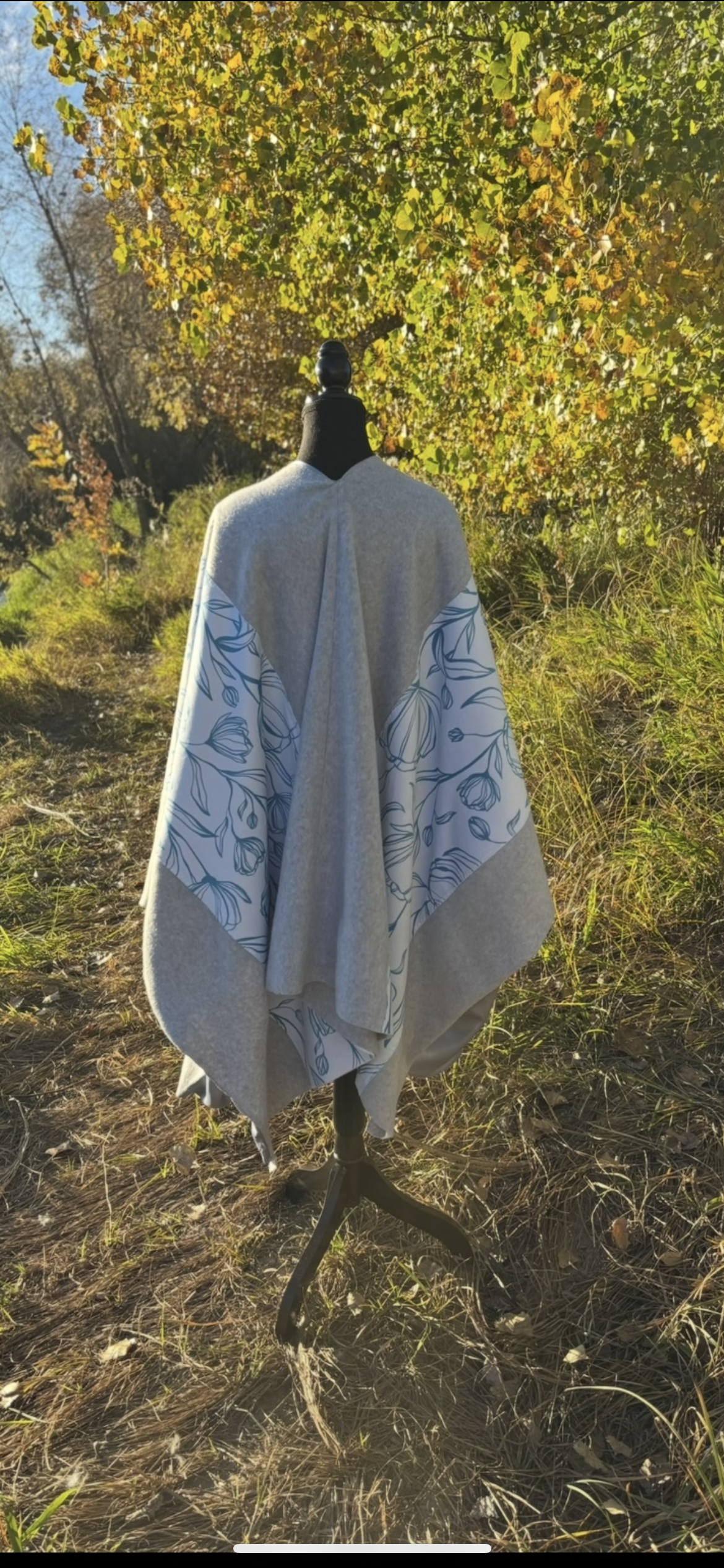 Soft, warm and beautiful open Poncho, fully lined. Made with Fleece, Minky velvet, Sustainable Satin and Faux Fur.