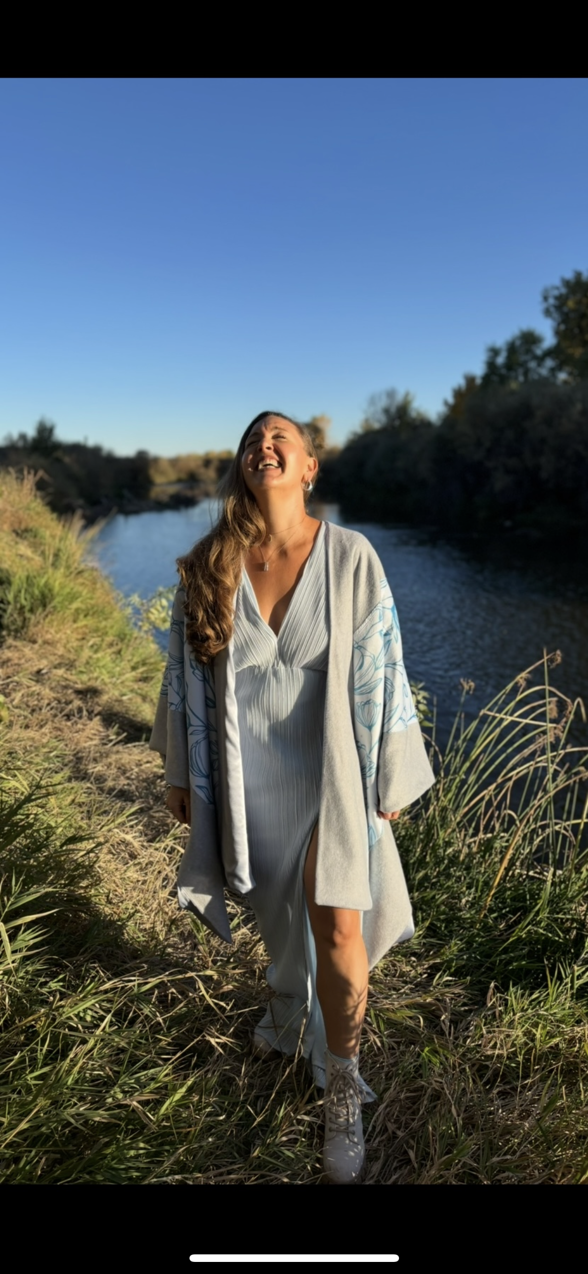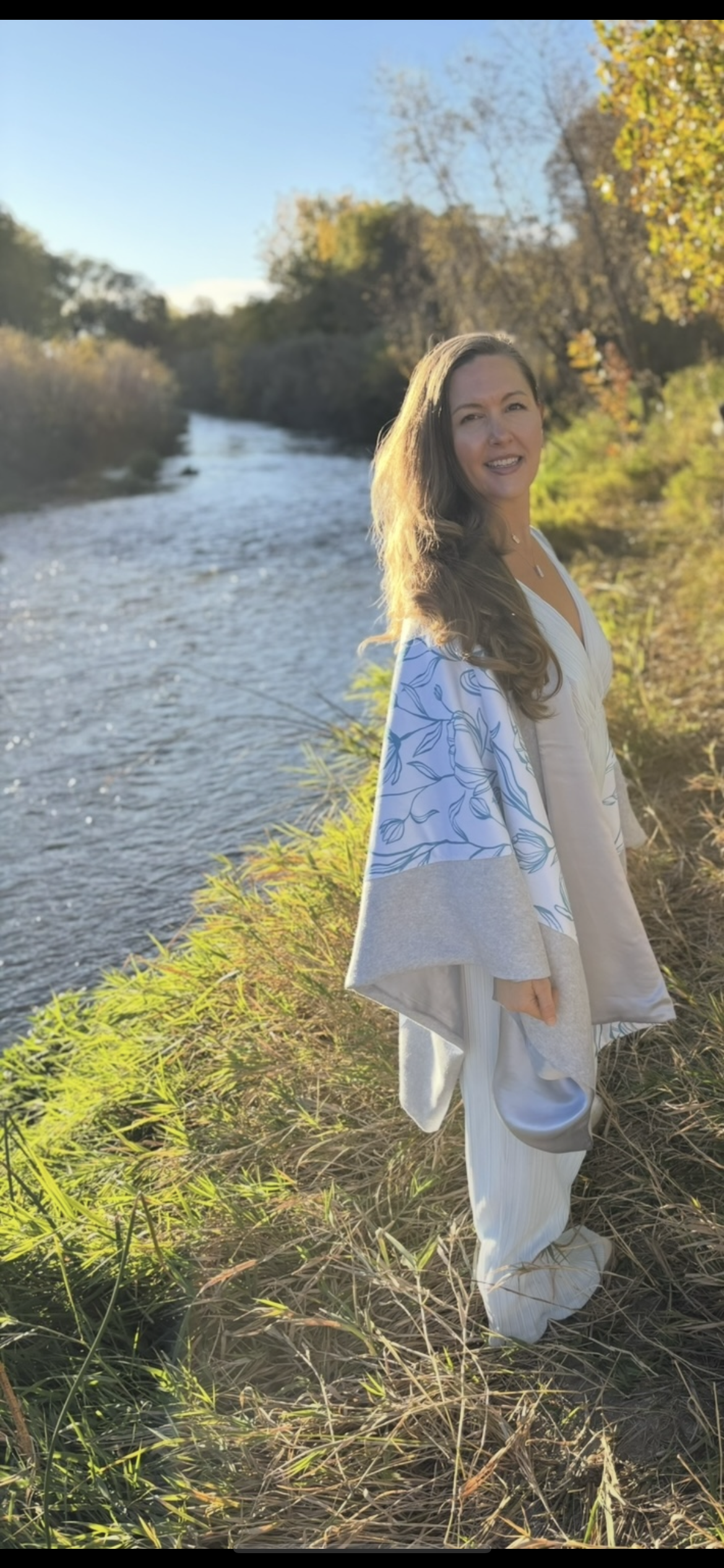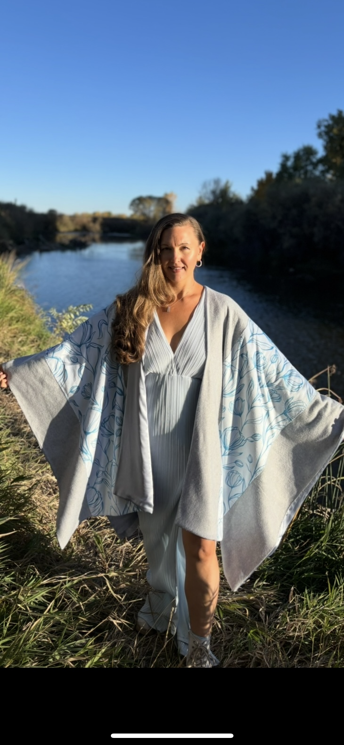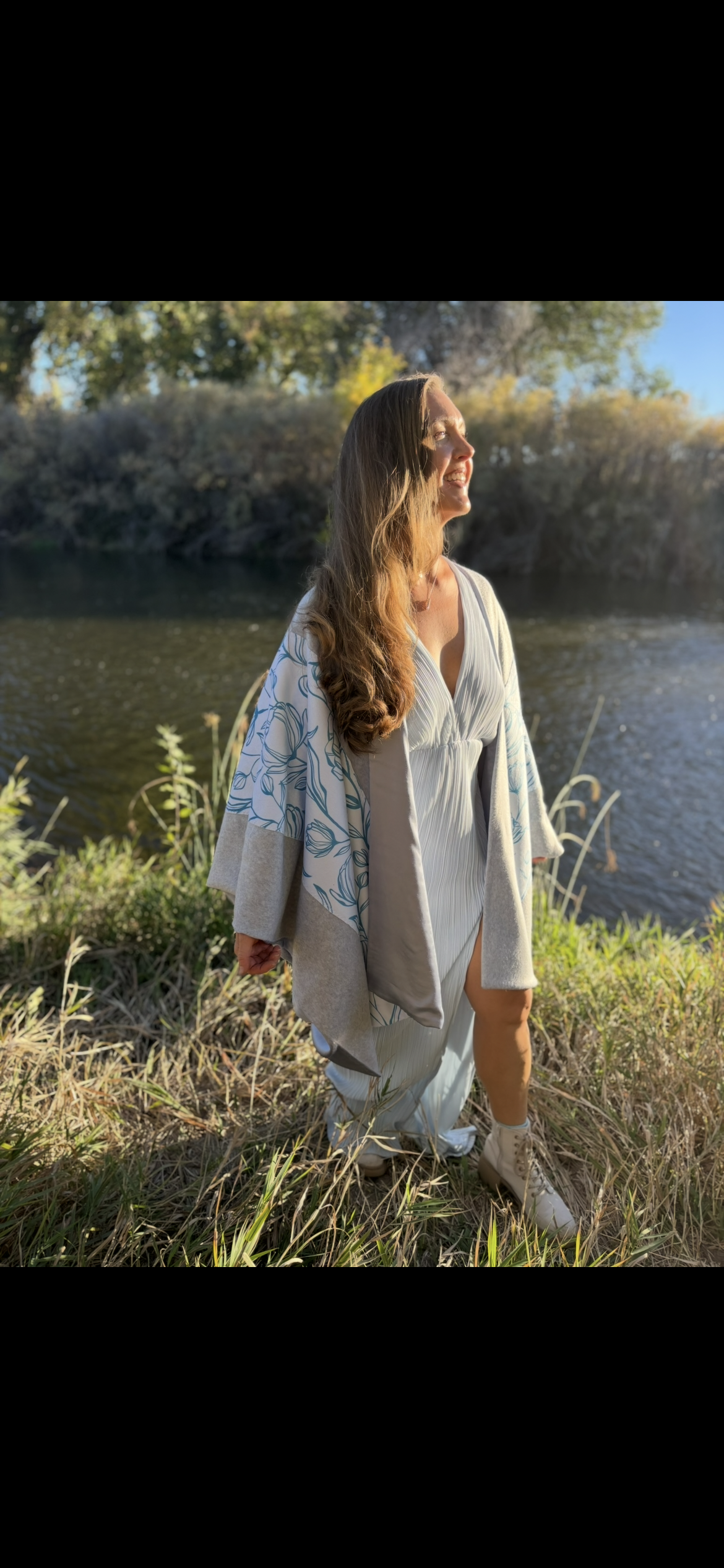 Soft, warm and beautiful open Poncho, fully lined. Made with Fleece, Minky velvet, Sustainable Satin and Faux Fur.