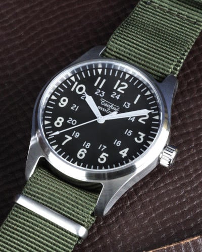 With a legacy of 169 years, Siduna is manufacturing in Europe a modern-day, 39.0mm rendition of the MIL-W3818B for Techné, using the Swiss Soprod calibre P024.