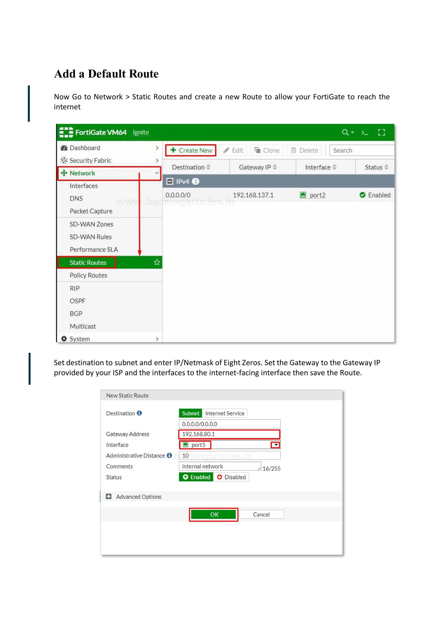 Network interface configuration & static routing