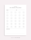This is a printable 30 day no spending challenge — just download, print, and start using it right away.
